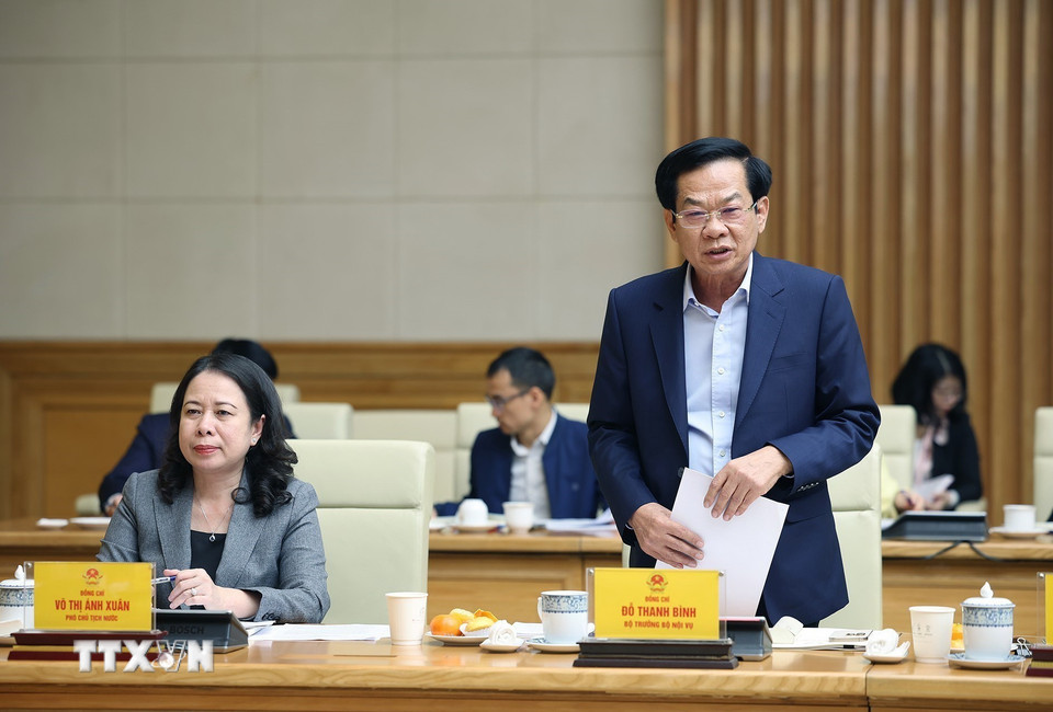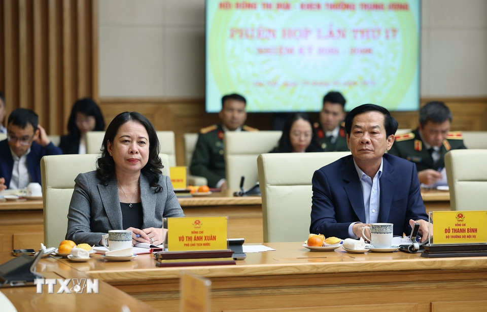 Phó Chủ tịch nước Võ Thị Ánh Xuân, Phó Chủ tịch thứ nhất và Bộ trưởng Bộ Nội vụ Đỗ Thanh Bình, Phó Chủ tịch Thường trực Hội đồng Thi đua-Khen thưởng Trung ương tham dự phiên họp. (Ảnh: Dương Giang/TTXVN)