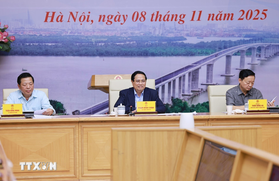 Thủ tướng Phạm Minh Chính chủ trì Phiên họp lần thứ 21 của Ban Chỉ đạo các dự án quan trọng quốc gia. (Ảnh: Dương Giang/TTXVN)