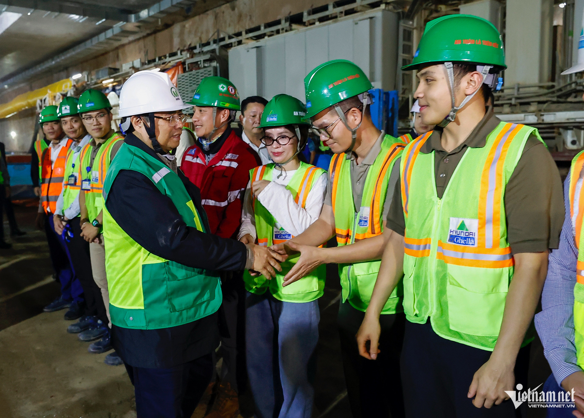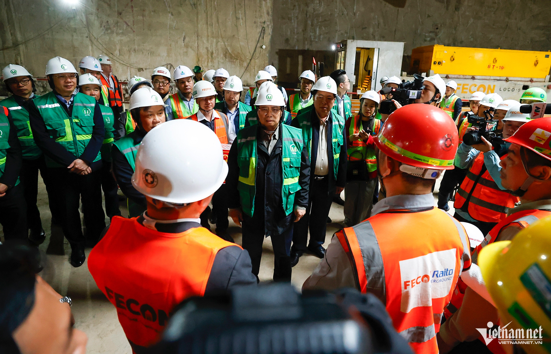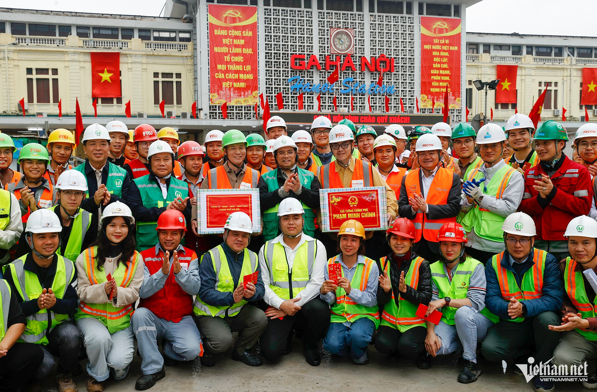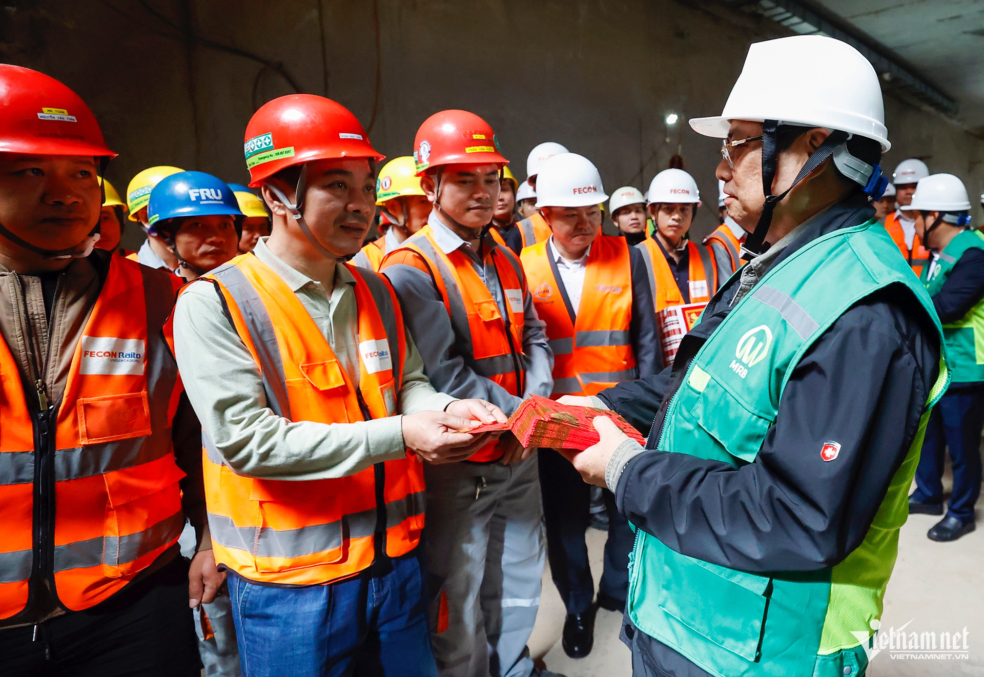 Thủ tướng Phạm Minh Chính đã di chuyển bằng xe goòng từ hầm B3 - Ga S9 (Kim Mã) tới hầm B2 - Ga S11 (Văn Miếu) và Ga S12 (Trần Hưng Đạo) của tuyến đường sắt đô thị Nhổn - Ga Hà Nội để thăm, chúc Tết các cán bộ, kỹ sư, chuyên gia và công nhân đang thi công trên công trường.