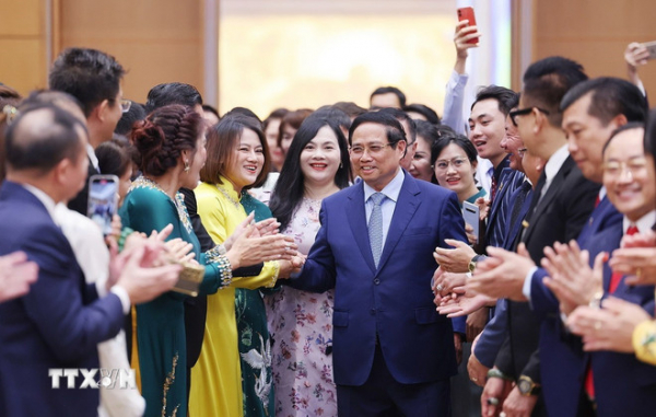 Thủ tướng mong muốn doanh nghiệp, doanh nhân Việt Nam một lòng theo Đảng; nêu cao tinh thần đại đoàn kết toàn dân tộc và đoàn kết quốc tế; cùng cả nước kết hợp sức mạnh dân tộc với sức mạnh thời đại để phát triển; đồng hành cùng dân tộc, kiên định con đường độc lập dân tộc và chủ nghĩa xã hội; cùng dân nhân tạo sức mạnh của toàn dân tộc.
