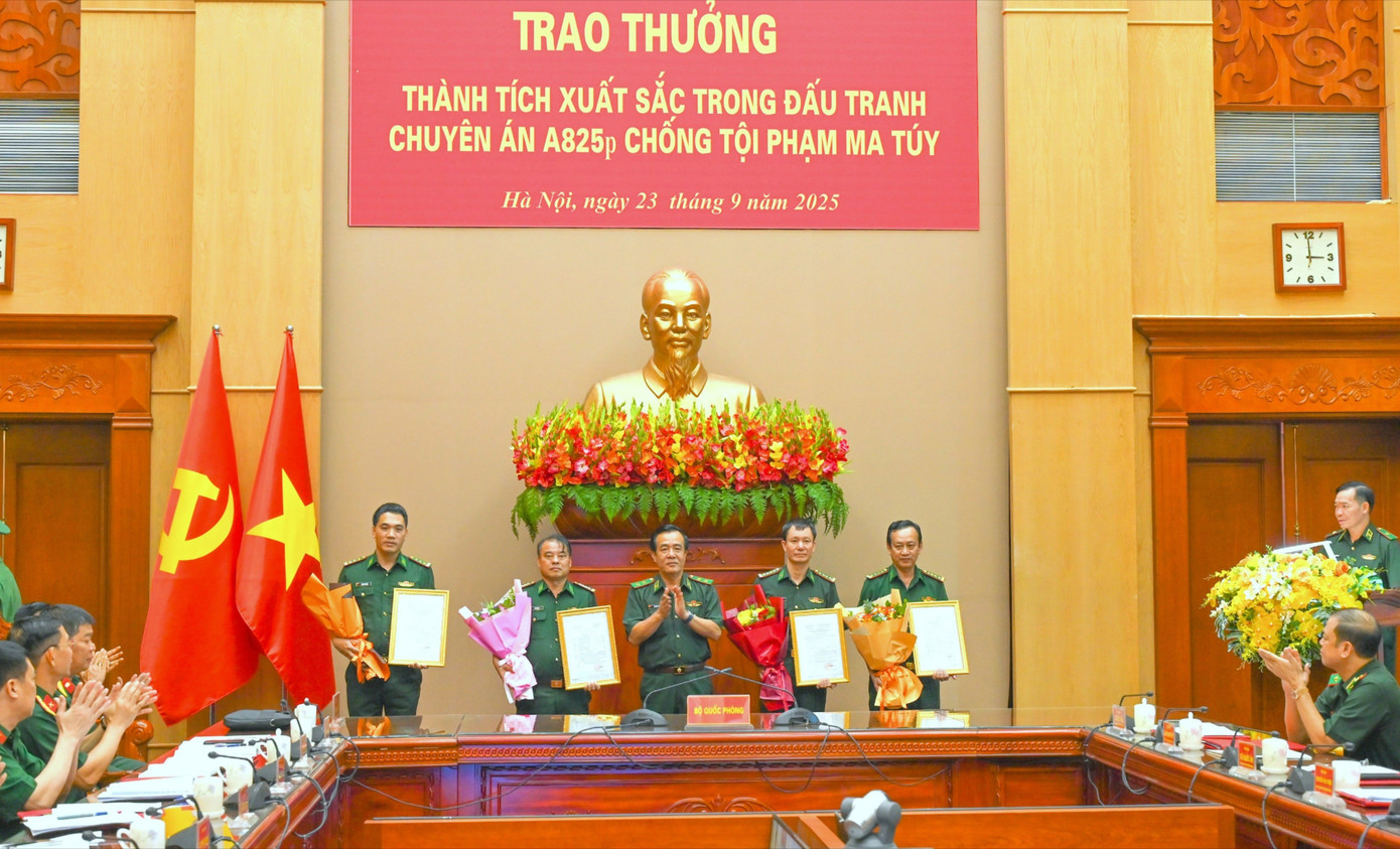 Lãnh đạo Bộ Tư lệnh Bộ đội Biên phòng trao thưởng cho các đơn vị Biên phòng tham gia đấu tranh Chuyên án A825p.