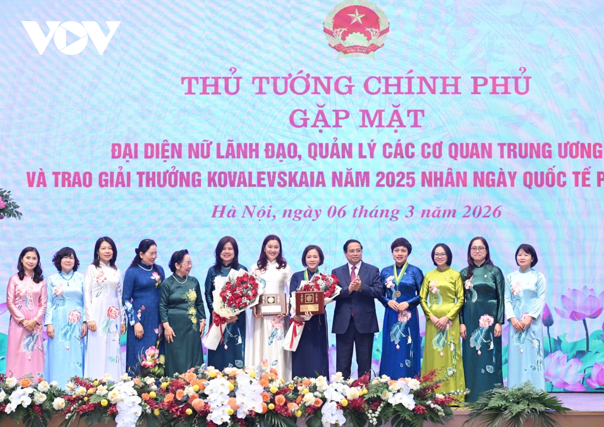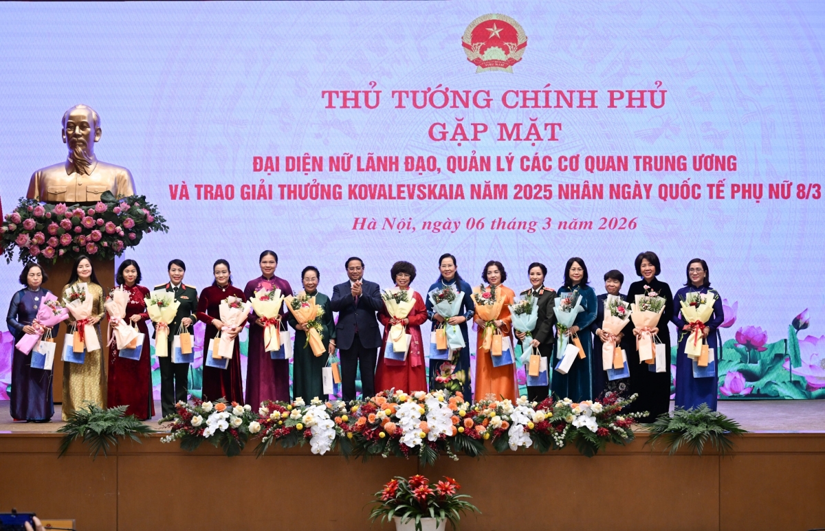 Nhân kỷ niệm 116 năm Ngày Quốc tế Phụ nữ - 8/3, kỷ niệm 1986 năm Khởi nghĩa Hai Bà Trưng, sáng nay (6/3), tại Trụ sở Chính phủ, Thủ tướng Chính phủ Phạm Minh Chính gặp mặt nữ lãnh đạo, quản lý các cơ quan Trung ương và trao Giải thưởng Kovalevskaia năm 2025.