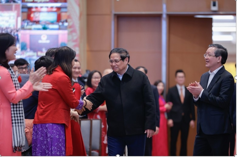 Các nông dân tham gia Hội nghị Thủ tướng Chính phủ đối thoại với nông dân Việt Nam năm 2024 vui mừng khi được gặp Thủ tướng Phạm Minh Chính.