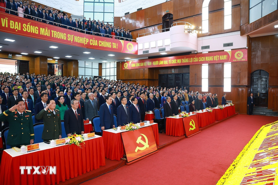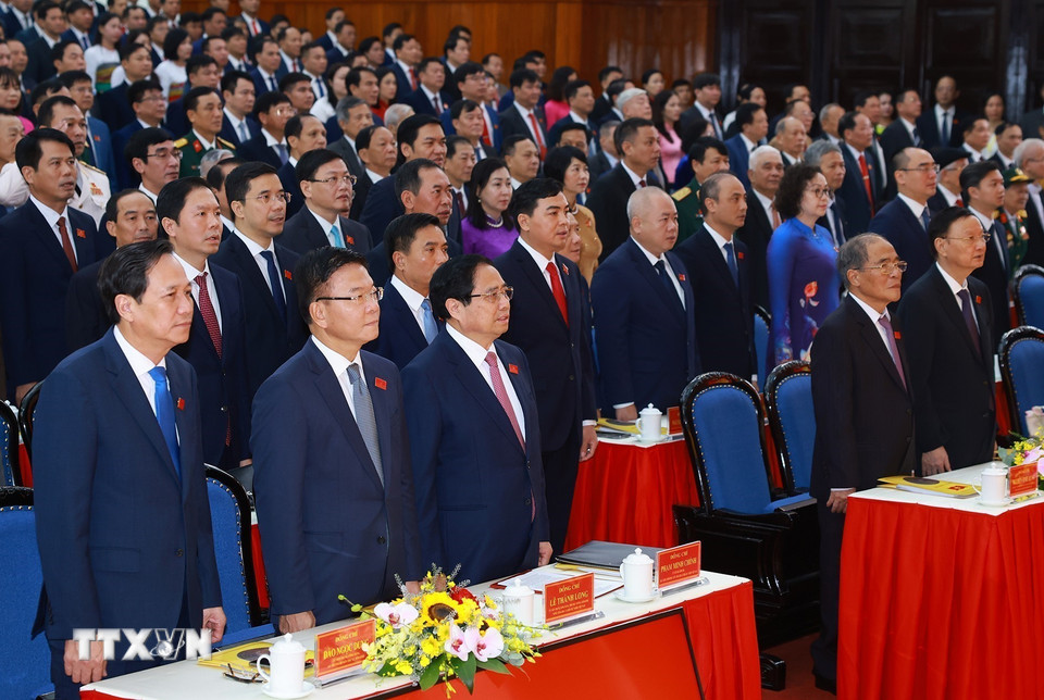 Đồng chí Phạm Minh Chính, Ủy viên Bộ Chính trị, Bí thư Đảng ủy, Thủ tướng Chính phủ đến dự và chỉ đạo Đại hội đại biểu Đảng bộ tỉnh Thanh Hóa lần thứ 20. (Ảnh: Dương Giang/TTXVN)