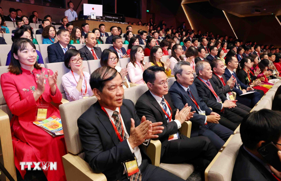 Thủ tướng Phạm Minh Chính và các đại biểu tham dự Đại hội thi đua yêu nước ngành Ngân hàng lần thứ 9. (Ảnh: Phạm Kiên/TTXVN)