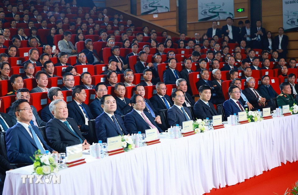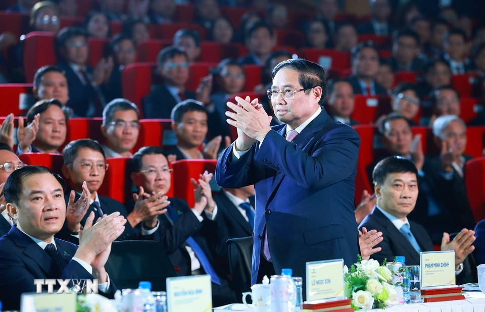 Thủ tướng Phạm Minh Chính với các đại biểu dự hội nghị. (Ảnh: Dương Giang/TTXVN)