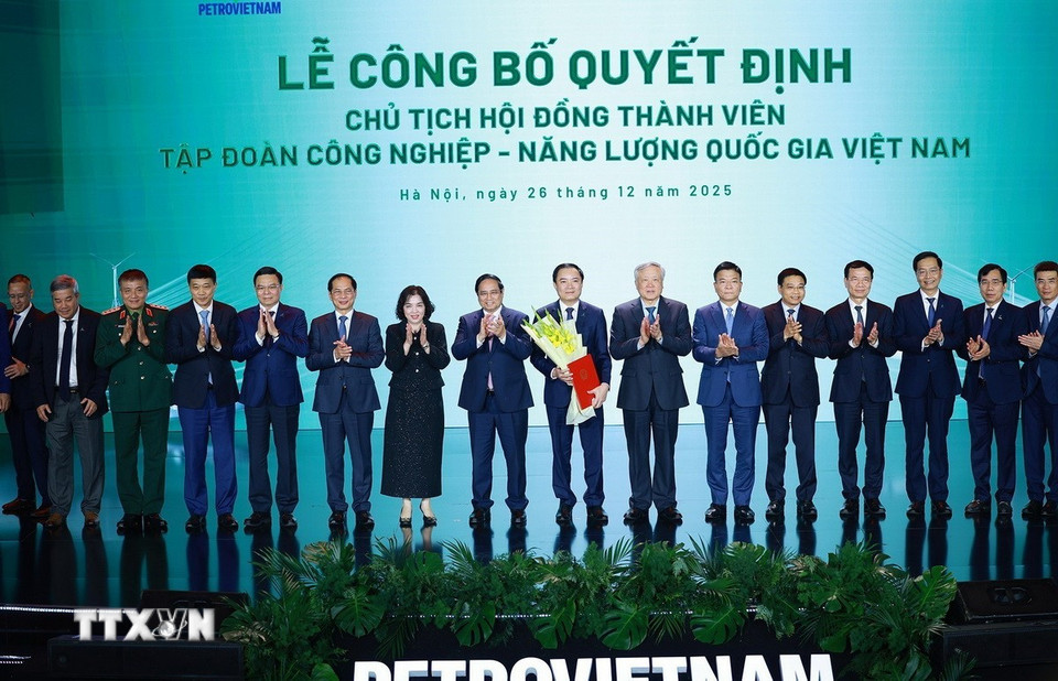 Thủ tướng Phạm Minh Chính dự Hội nghị triển khai nhiệm vụ năm 2026 của Tập đoàn Công nghiệp-Năng lượng Quốc gia Việt Nam. (Ảnh: Dương Giang/TTXVN)