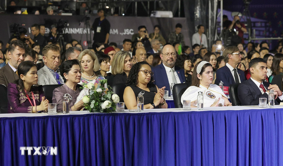 Các đại biểu khách quốc tế dự khai mạc Lễ hội Văn hóa Thế giới tại Hà Nội lần thứ nhất. (Ảnh: Dương Giang/TTXVN)