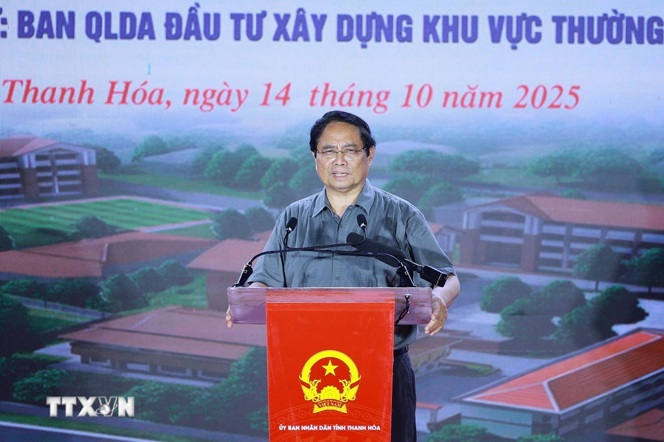 Thủ tướng Phạm Minh Chính phát biểu tại lễ khởi công. (Ảnh: Dương Giang/TTXVN)