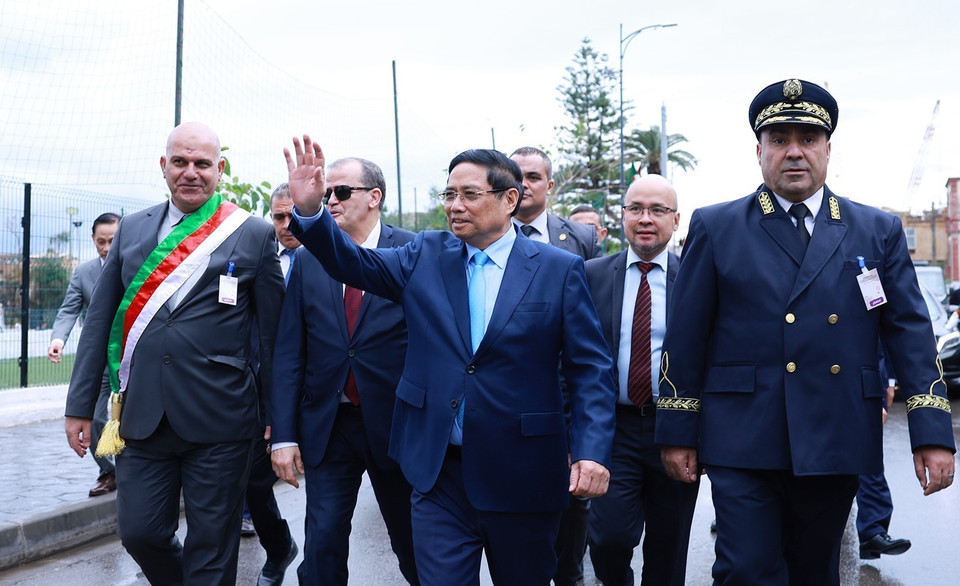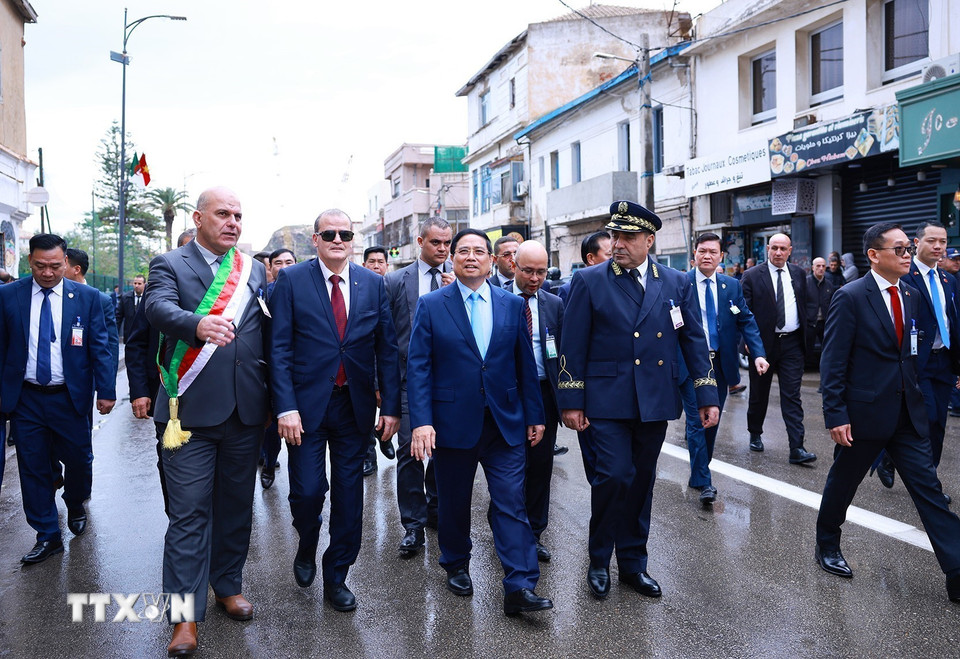 Thủ tướng Phạm Minh Chính thăm Đại lộ Hồ Chí Minh tại thủ đô Alger, Algeria. (Ảnh: Dương Giang/TTXVN)