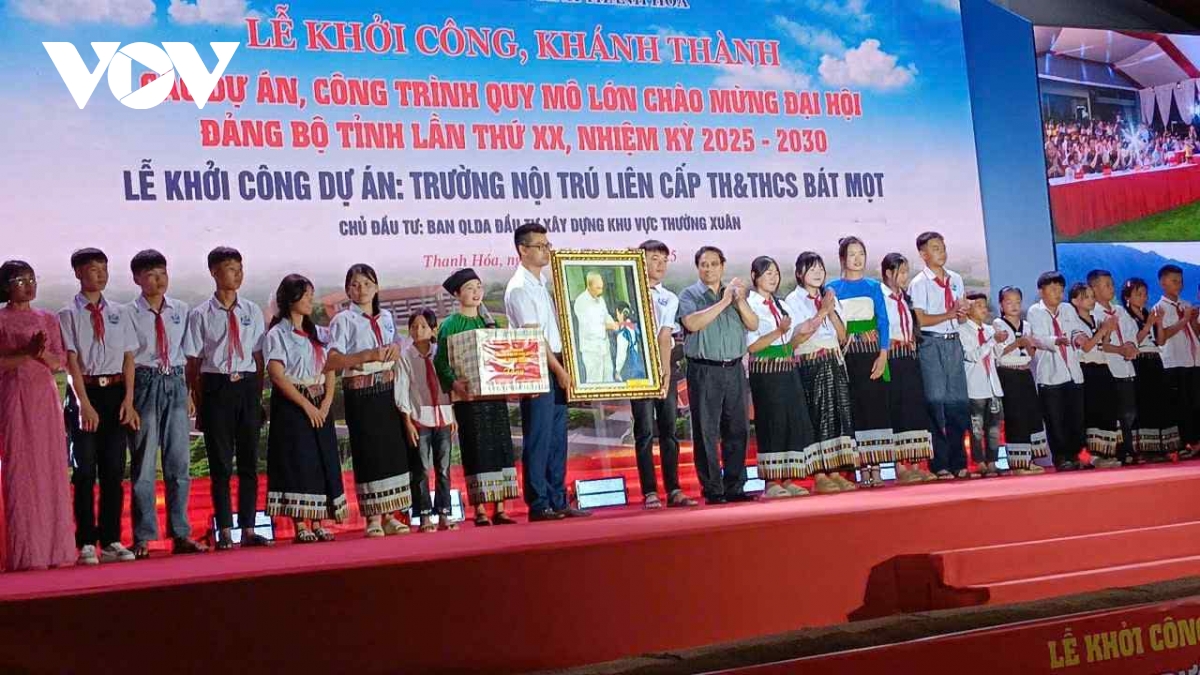 Chiều 14/10, tỉnh Thanh Hóa đồng loạt tổ chức lễ khánh thành và khởi công các công trình, dự án chào mừng Đại hội Đảng bộ tỉnh Thanh Hóa lần thứ XX được tổ chức theo hình thức trực tiếp kết hợp trực tuyến, với điểm cầu trung tâm tại Lễ khởi công Dự án Trường Phổ thông Dân tộc nội trú liên cấp Tiểu học và Trung học cơ sở Bát Mọt, xã Bát Mọt, tỉnh Thanh Hóa.