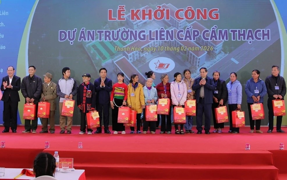 Sáng nay, tại xã Cẩm Thạch (Thanh Hóa) diễn ra lễ khởi công dự án Trường liên cấp Cẩm Thạch. Tham dự buổi lễ có Thủ tướng Phạm Minh Chính.
