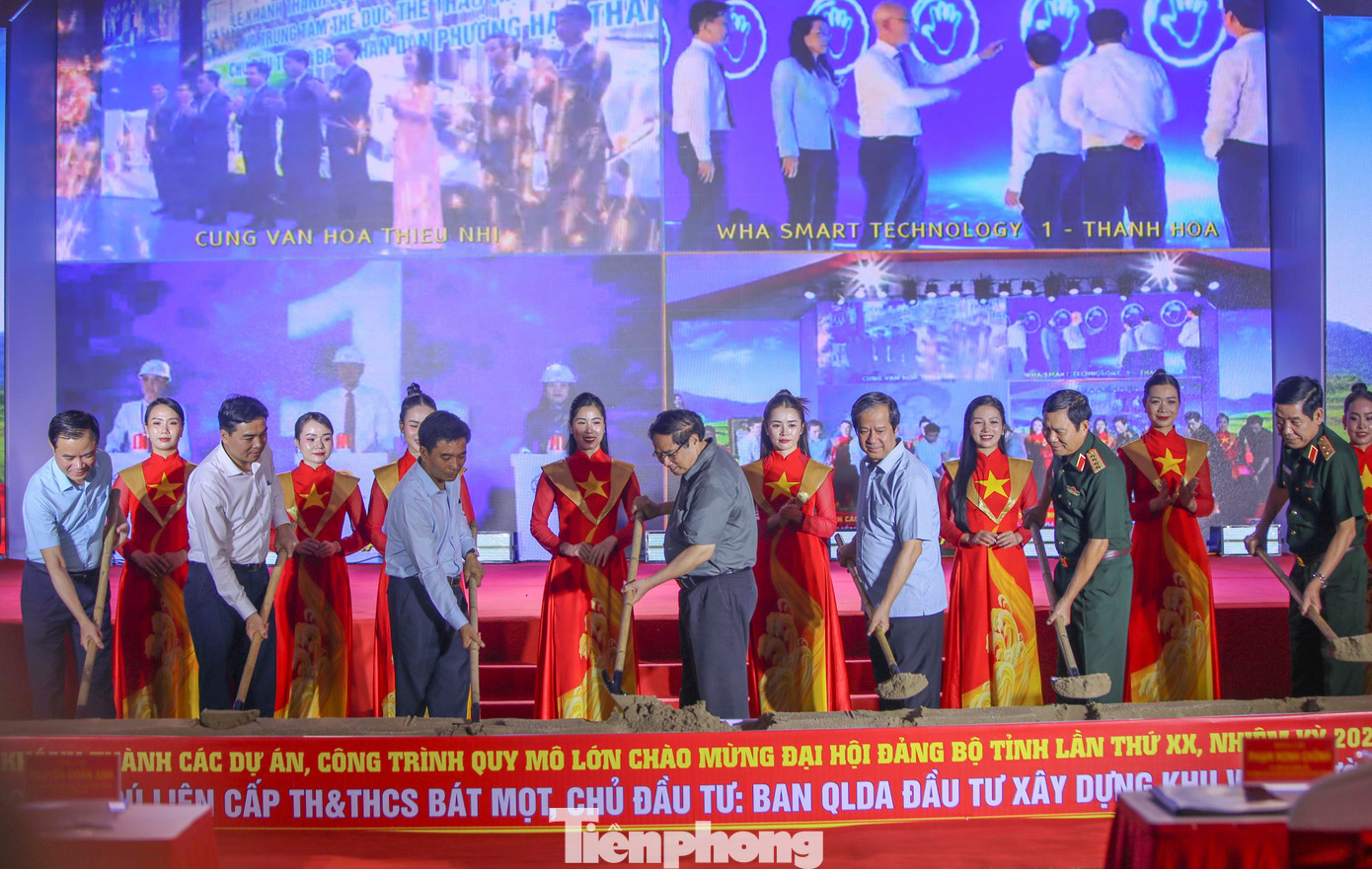 Thủ tướng Chính phủ Phạm Minh Chính dự lễ Khởi công dự án Trường nội trú liên cấp TH&THCS Bát Mọt (Thanh Hóa). Ảnh: Phạm Trường.
