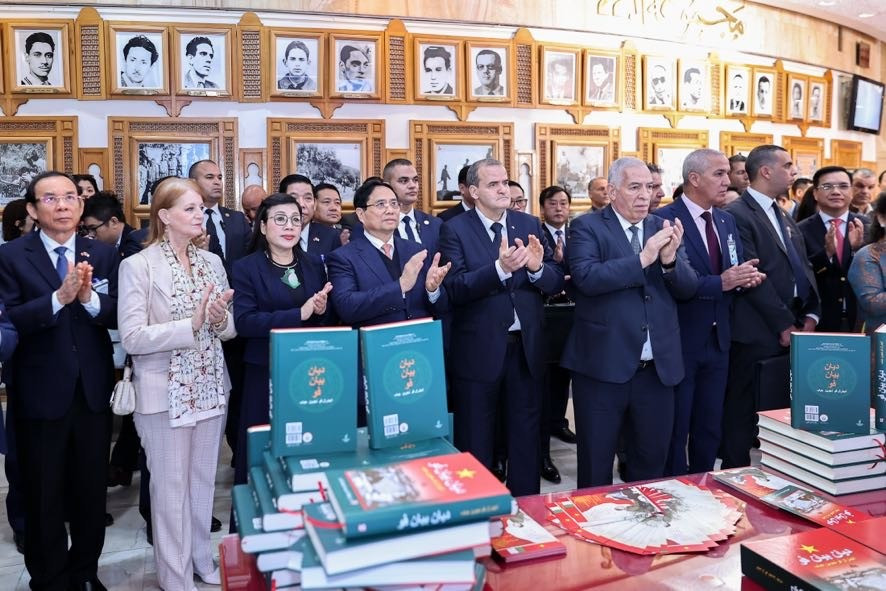 Thủ tướng Phạm Minh Chính và Phu nhân dự lễ ra mắt cuốn sách "Điện Biên Phủ" bằng tiếng Ả-rập. Ảnh: VGP