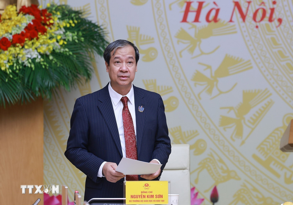 Bộ trưởng Bộ Giáo dục và Đào tạo Nguyễn Kim Sơn phát biểu. (Ảnh: Dương Giang/TTXVN)
