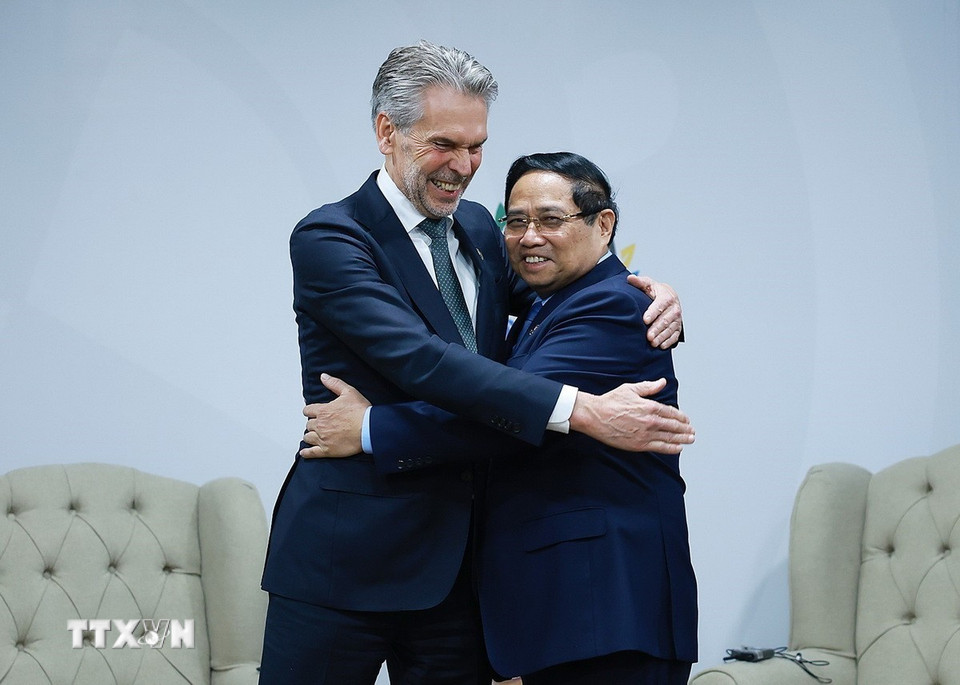 Thủ tướng Phạm Minh Chính gặp Thủ tướng Hà Lan Dick Schoof. (Ảnh: Dương Giang/TTXVN)