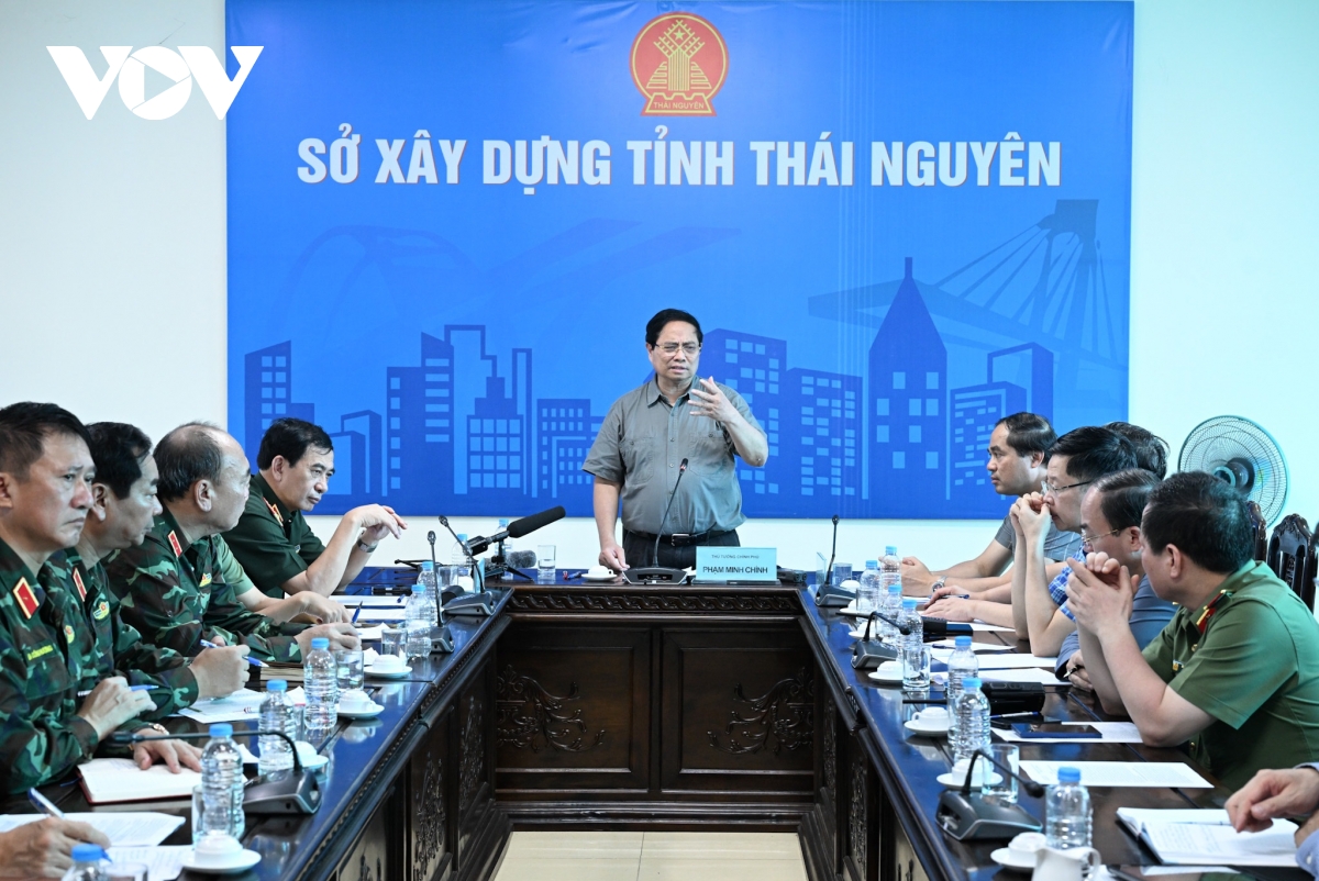 Làm việc với lãnh đạo các bộ, ngành và lãnh đạo chủ chốt tỉnh Thái Nguyên, Thủ tướng mong tỉnh phát huy tinh thần tự lực, tự cường vươn lên khắc phục bão lũ. Thủ tướng giao tỉnh Thái Nguyên làm chủ dự án đê kè 2 bờ sông Cầu và đường (khoảng 34 km) theo điều kiện khẩn cấp, với tinh thần khẩn trương, chỉ định thiết kế, thi công, nhà thầu có năng lực, cố gắng trong tháng 6/2026 hoàn thành dự án.