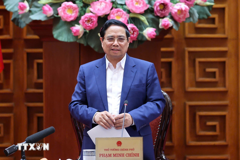 Thủ tướng Phạm Minh Chính chủ trì họp về triển khai các công trình hạ tầng phục vụ Tuần lễ Cấp cao APEC 2027. (Ảnh: Dương Giang/TTXVN)