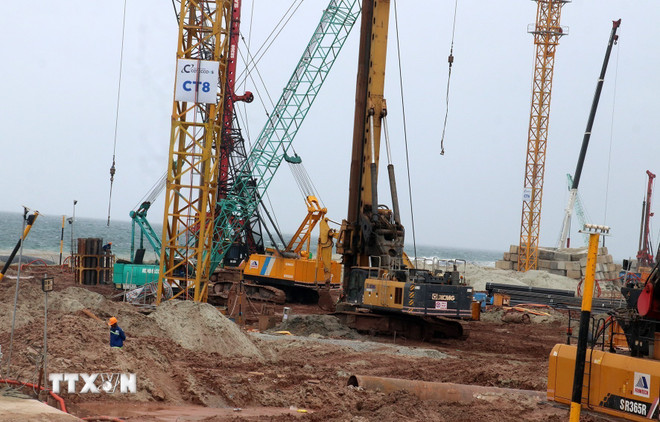Công trường thi công Dự án Trung tâm tổ chức Hội nghị APEC 2027 và các công trình chức năng. (Ảnh: Lê Huy Hải/TTXVN)