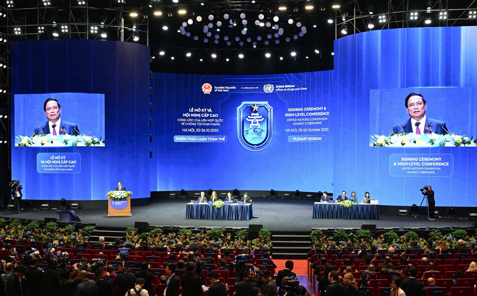 Thủ tướng bày tỏ Việt Nam cam kết thực hiện đầy đủ nghiêm túc mọi nghĩa vụ đã đề ra và đồng hành cùng các quốc gia thành viên triển khai Công ước Hà Nội một cách thực chất, hiệu quả, đồng thời tiếp tục đóng vai trò cầu nối, khuyến khích đối thoại, tăng cường niềm tin chiến lược giữa các quốc gia trong lĩnh vực an ninh mạng, thúc đẩy phương châm "không ai bị bỏ lại phía sau trong kỷ nguyên số".