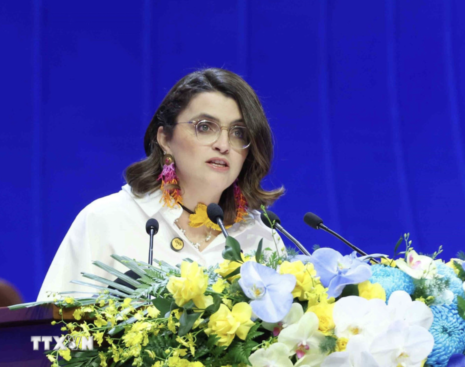 Phó Tổng thống Ecuador María José Pinto González Artigas phát biểu tại phiên toàn thể. Ảnh: TTXVN.