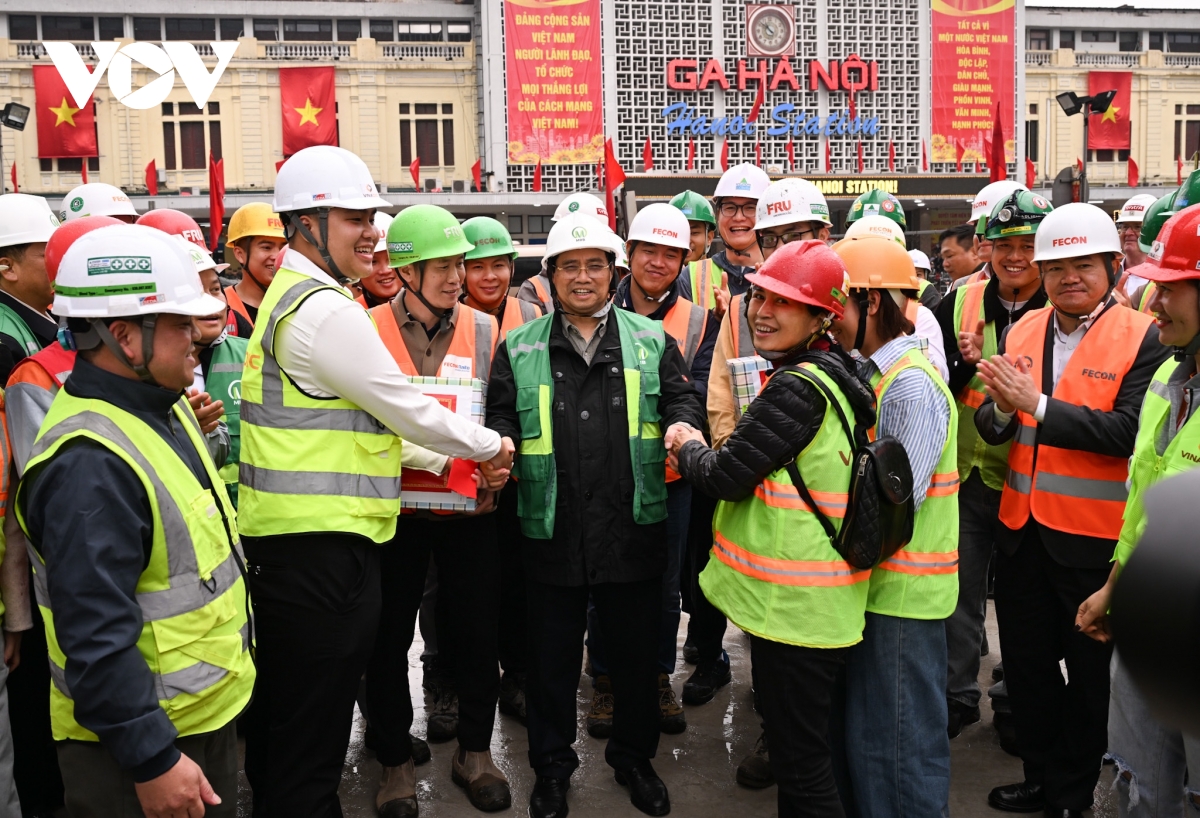 Nhân dịp năm mới, Thủ tướng chúc công nhân, người lao động trên công trường luôn dồi dào sức khỏe và bày tỏ cảm ơn người lao động đã hi sinh những ngày nghỉ Tết để chăm lo công việc chung của đất nước, của thành phố Hà Nội.