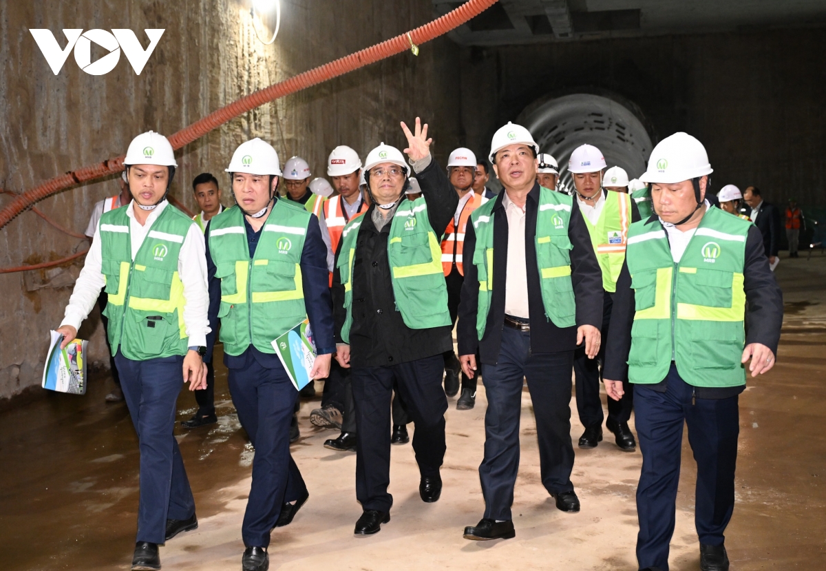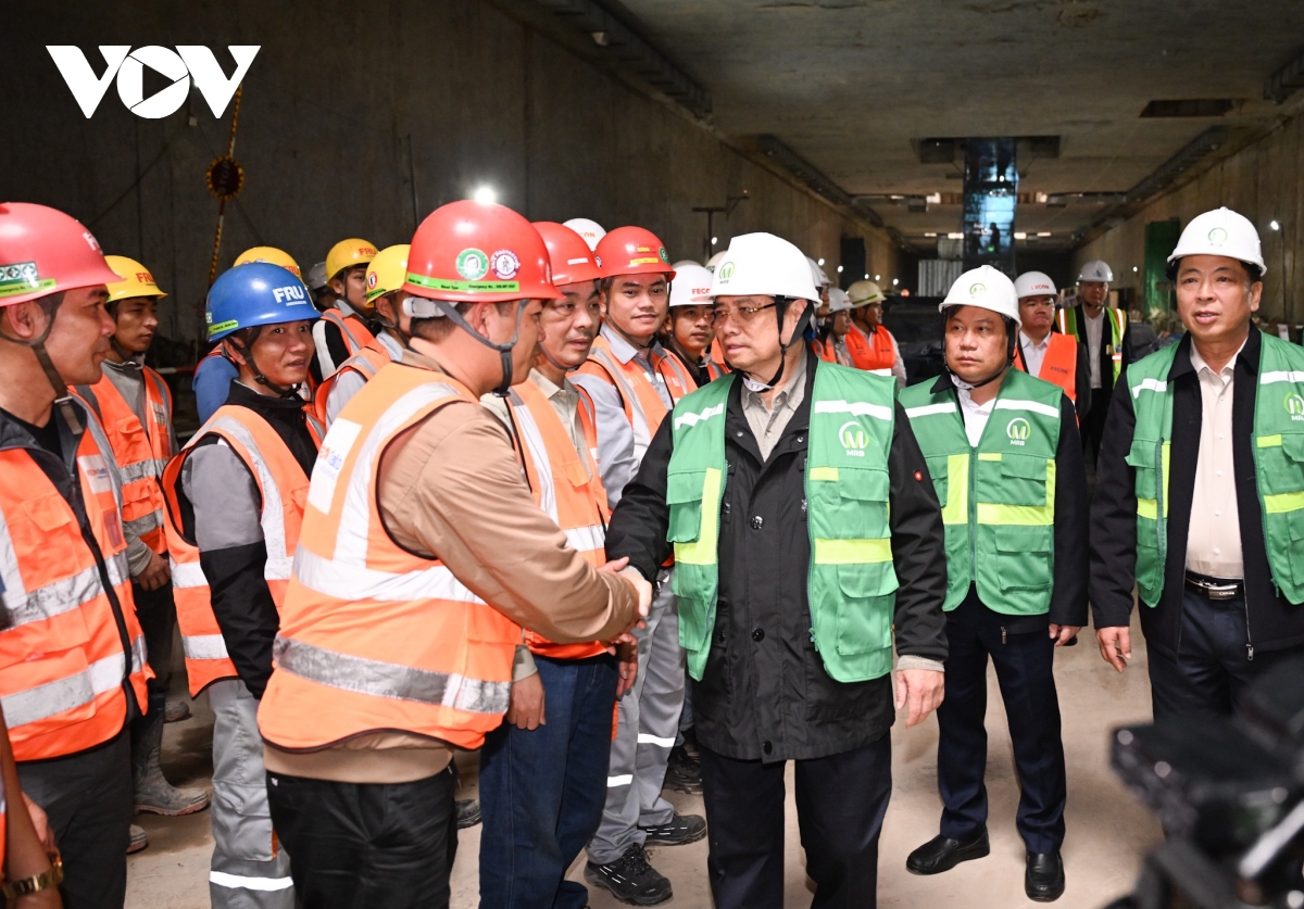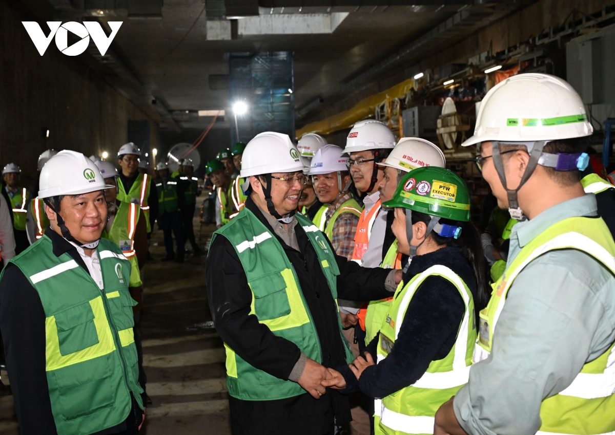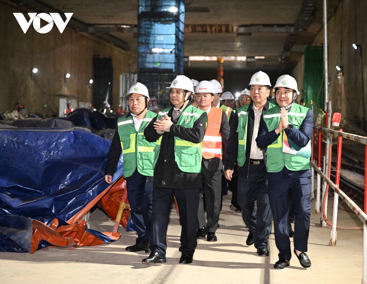 Trong sáng nay, Thủ tướng Phạm Minh Chính đã di chuyển bằng xe goòng từ hầm B3, Ga đường sắt đô thị S9 (Kim Mã) tới hầm B2, Ga S11 (Văn Miếu) và Ga S12 (Trần Hưng Đạo) của tuyến đường sắt đô thị Nhổn - Ga Hà Nội để thăm, chúc Tết các lực lượng đang thi công trên công trường.