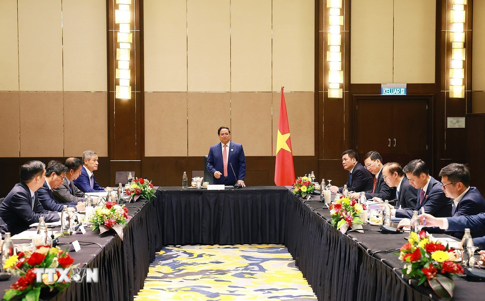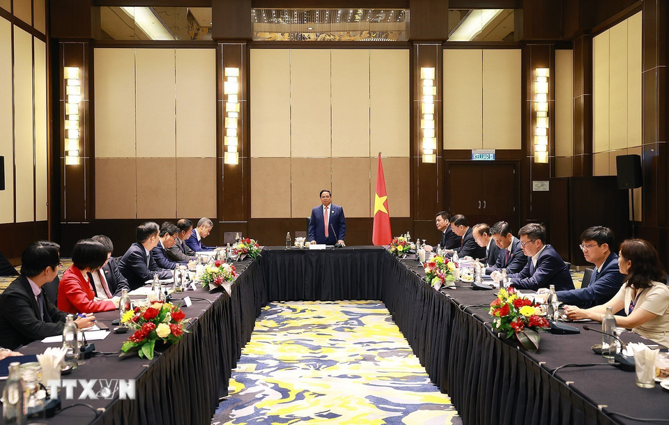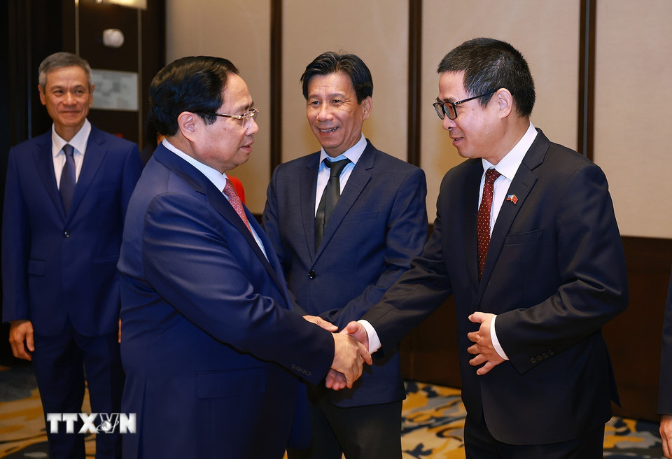 Thủ tướng Phạm Minh Chính với Đại sứ Việt Nam tại một số nước trong khu vực Đông Nam Á. (Ảnh: Dương Giang/TTXVN)