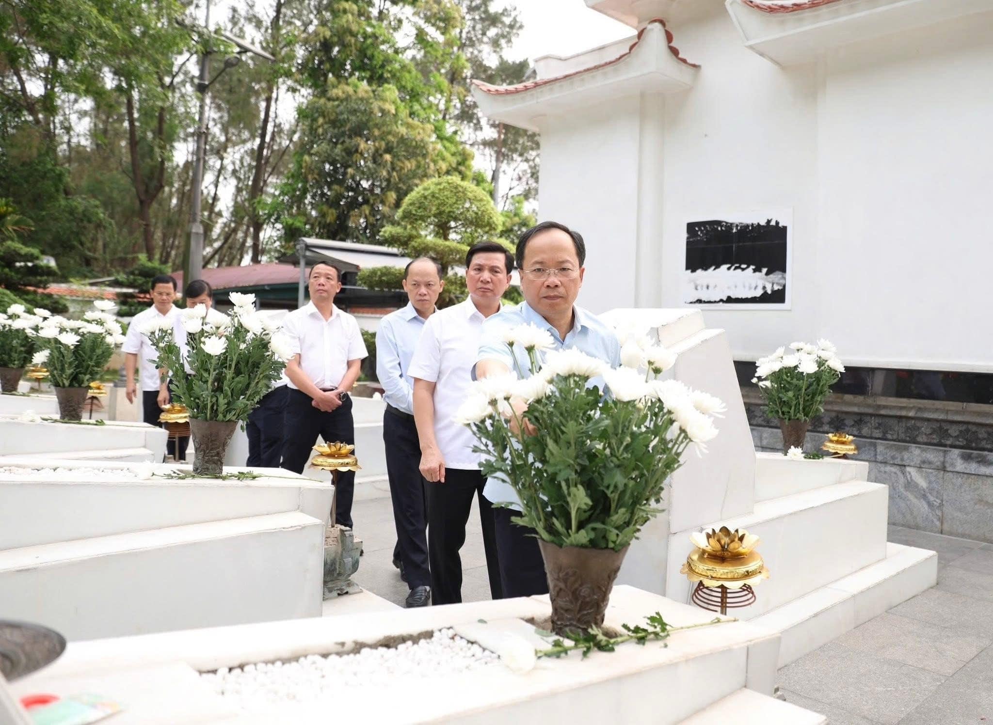 Bí thư Tỉnh ủy Hà Tĩnh Nguyễn Duy Lâm cùng các thành viên Đoàn công tác dâng hoa tại Khu mộ 10 nữ anh hùng liệt sĩ thanh niên xung phong