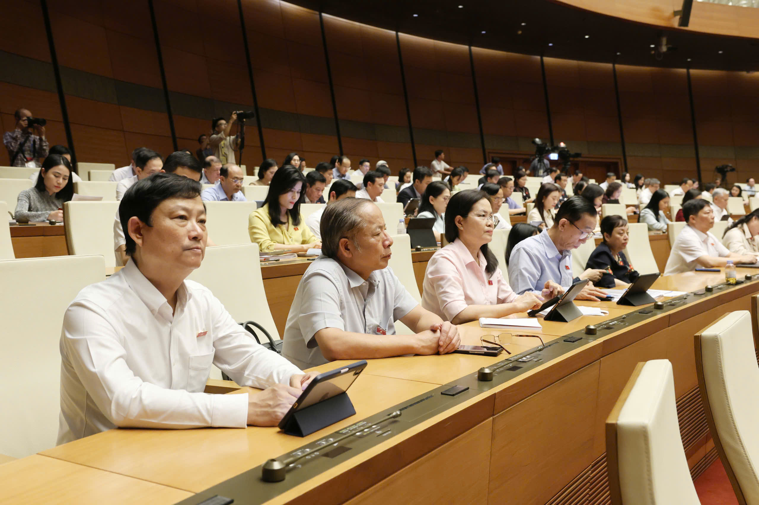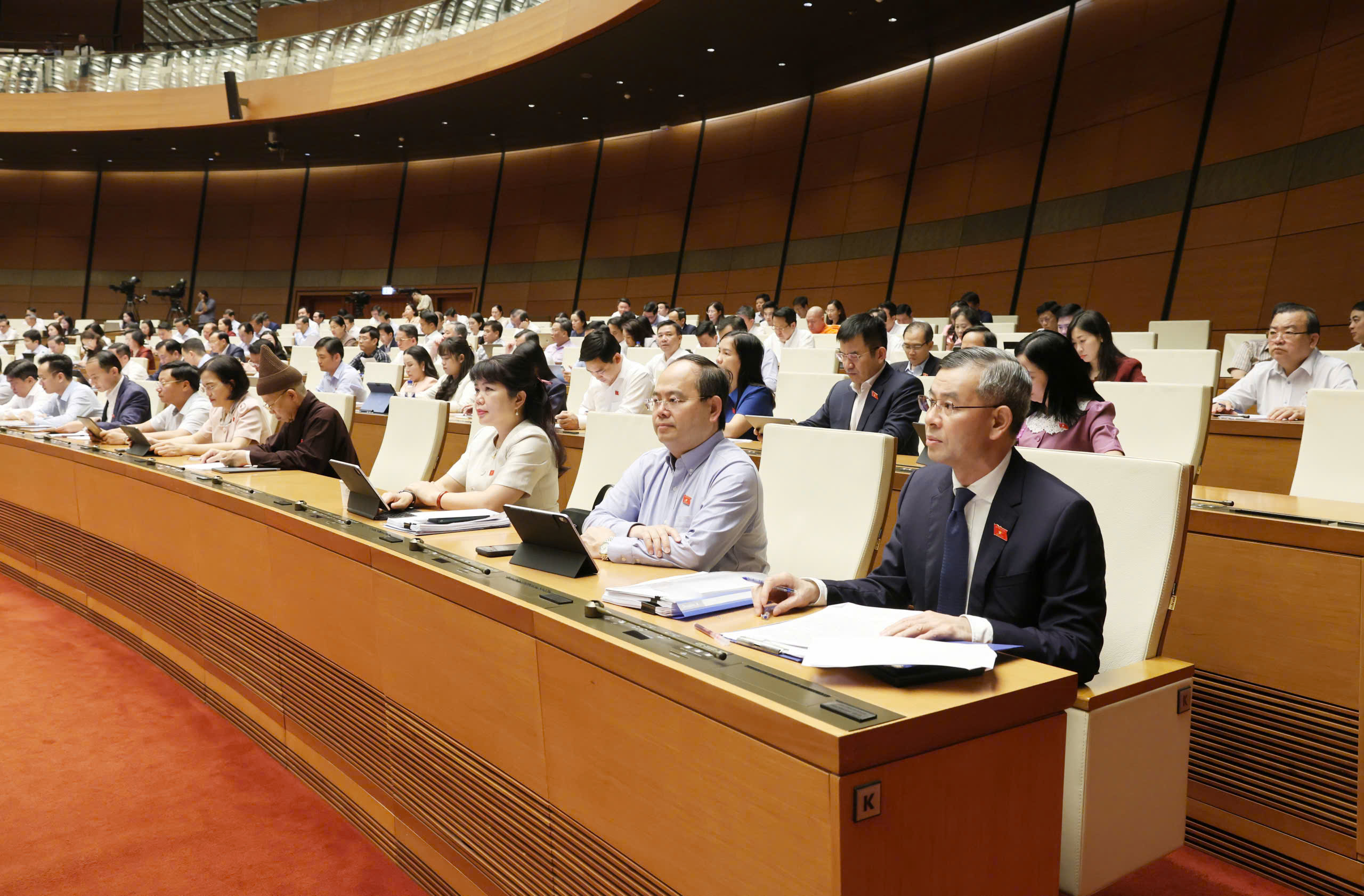 Các đại biểu Quốc hội dự phiên họp tại hội trường Diên Hồng chiều 9-4. Ảnh: QUANG PHÚC