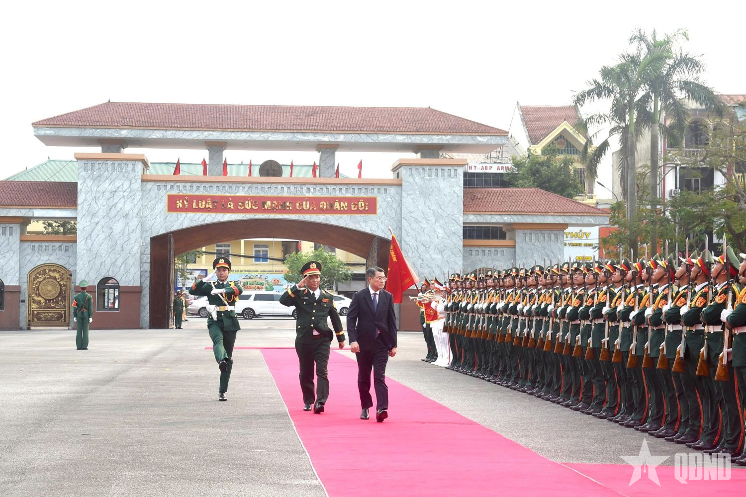 Quân khu 4 đón Thủ tướng Lê Minh Hưng đến dự lễ.