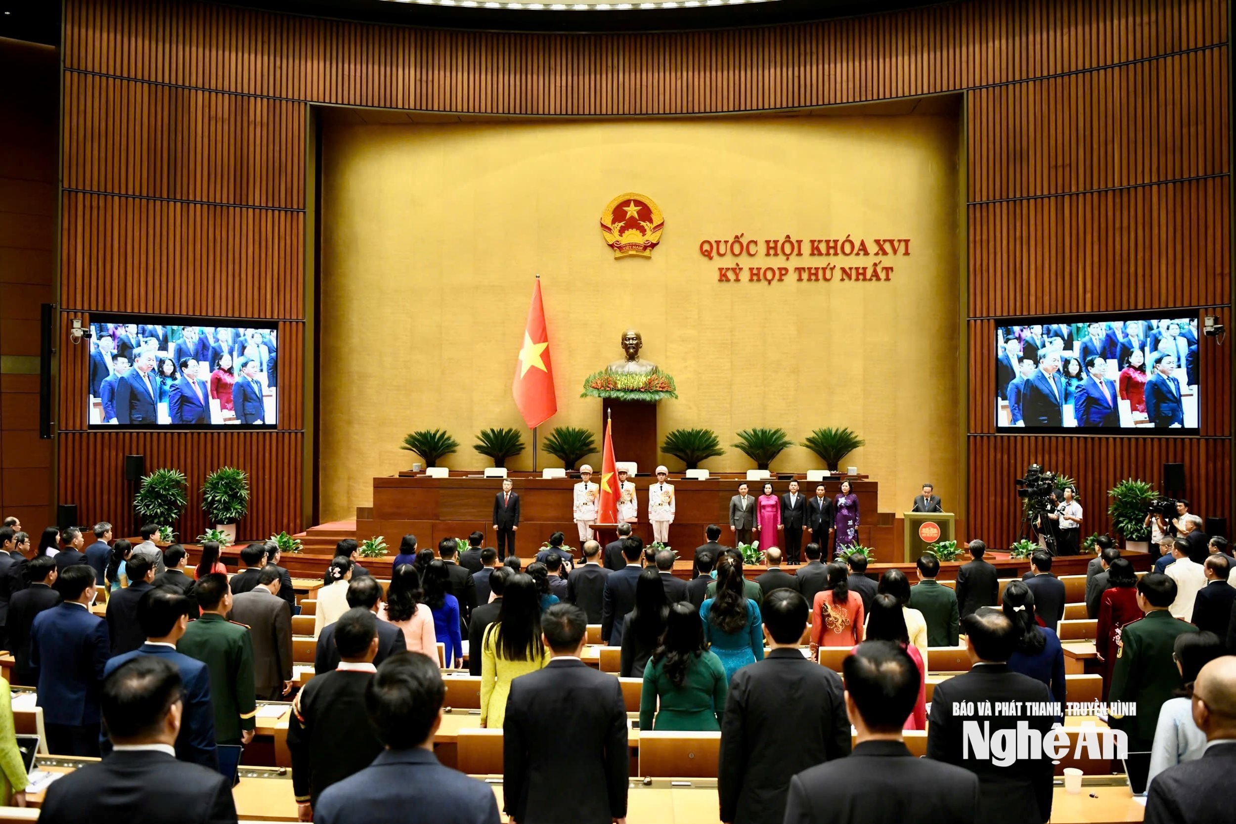 Đoàn đại biểu tỉnh Nghệ An tham dự kỳ họp thứ nhất, Quốc hội khóa XVI. Ảnh: LH