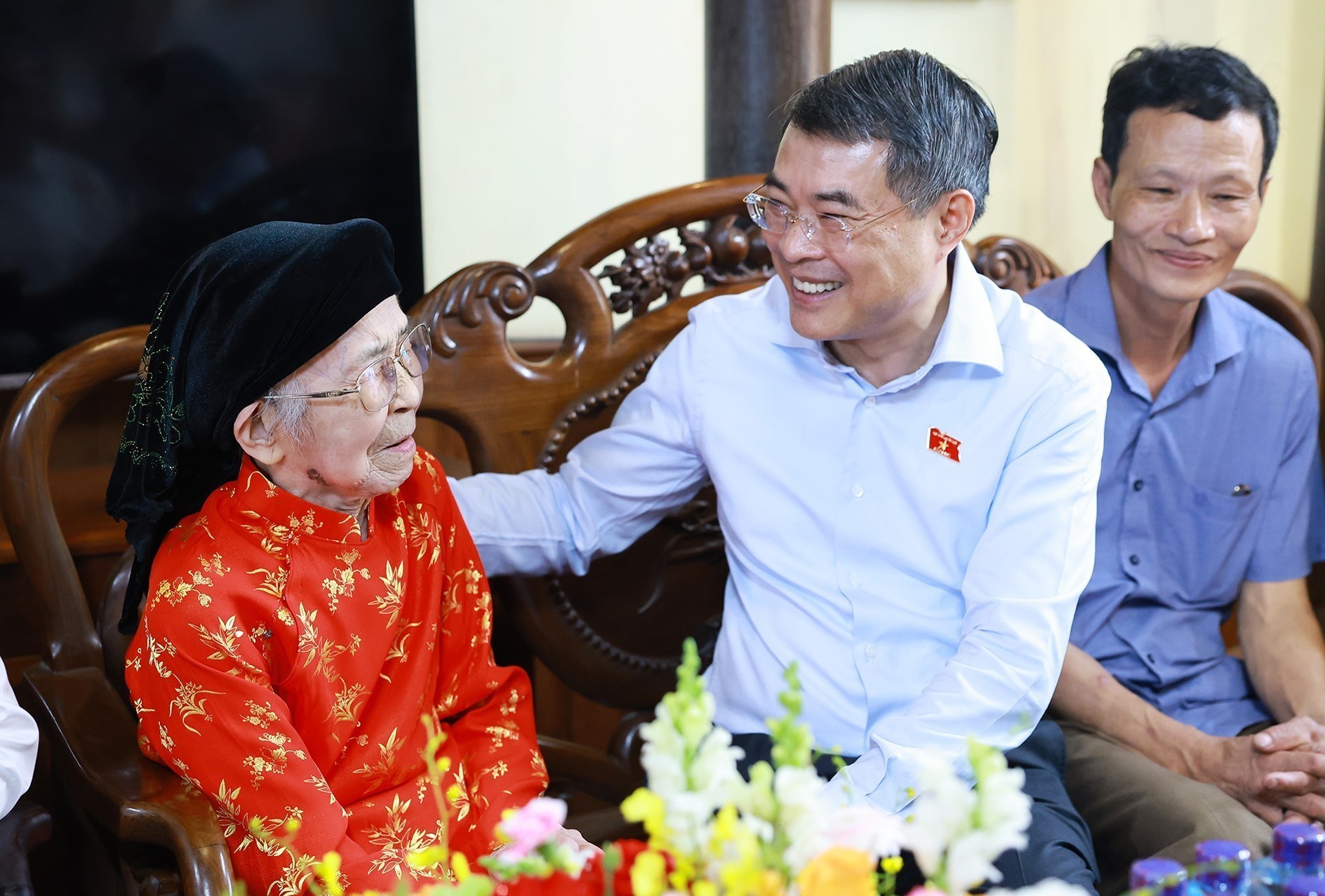 Thủ tướng Chính phủ Lê Minh Hưng thăm, tặng quà Mẹ Việt Nam Anh hùng Phạm Thị Hán, có hai con là liệt sĩ. Ảnh: Dương Giang – TTXVN