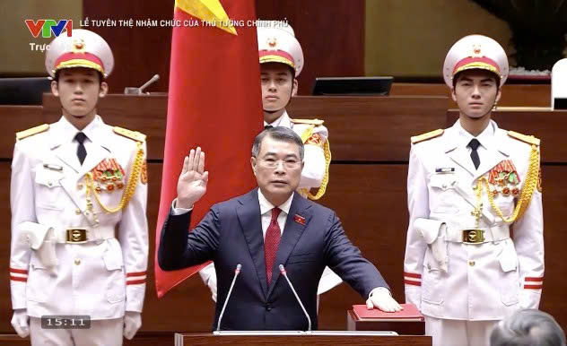"Dưới cờ đỏ sao vàng thiêng liêng của Tổ quốc, trước Quốc hội và đồng bào, cử tri cả nước, tôi - Thủ tướng Chính phủ nước Cộng hòa xã hội chủ nghĩa Việt Nam - xin tuyên thệ: Tuyệt đối trung thành với Tổ quốc, với nhân dân, với Hiến pháp nước Cộng hòa xã hội chủ nghĩa Việt Nam, nỗ lực phấn đấu hoàn thành tốt nhiệm vụ được Đảng, Nhà nước và nhân dân giao phó" - Thủ tướng Lê Minh Hưng tuyên thệ.