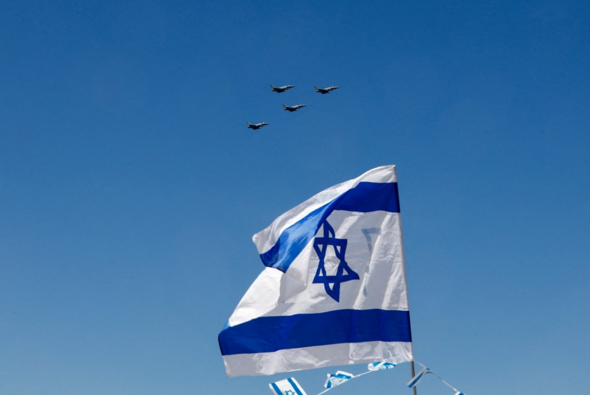 Hình ảnh máy bay bay ngang qua quốc kỳ Israel trong một chương trình biểu diễn trên không được tổ chức nhân kỷ niệm 75 năm Ngày Độc lập của Israel, tại Tel Aviv, Israel, ngày 26/4/023. Ảnh minh họa: Reuters