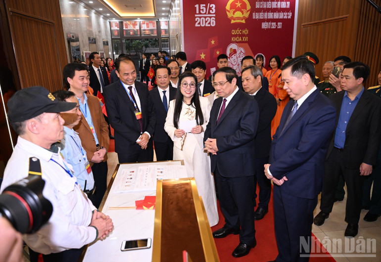 Nói chuyện với cán bộ Tổ bầu cử số 21, Thủ tướng Phạm Minh Chính đánh giá cao công tác chuẩn bị bầu cử chu đáo, an toàn trong mọi khâu của Khu vực bầu cử số 21; nhấn mạnh việc tổ chức bầu cử cố gắng bầu cử sớm, tỷ lệ cử tri đi bầu cử cố gắng đạt 100%, cử tri đến bỏ phiếu phải được hướng dẫn đầy đủ; cử tri già, yếu không đến được điểm bỏ phiếu thì Tổ bầu cử phải bố trí hòm phiếu đến tận nhà để cử tri trực tiếp thực hiện quyền công dân; người dân đến điểm bỏ phiếu mà đi lại khó khăn thì cần được hỗ trợ. Thủ tướng đặc biệt nhấn mạnh ngày 15/3 thực sự là ngày hội đại đoàn kết toàn dân, để cử tri bầu những có đức, có tài, thật sự xứng đáng vào Quốc hội khóa XVI và đại biểu Hội đồng nhân dân các cấp nhiệm kỳ 2026-2031.