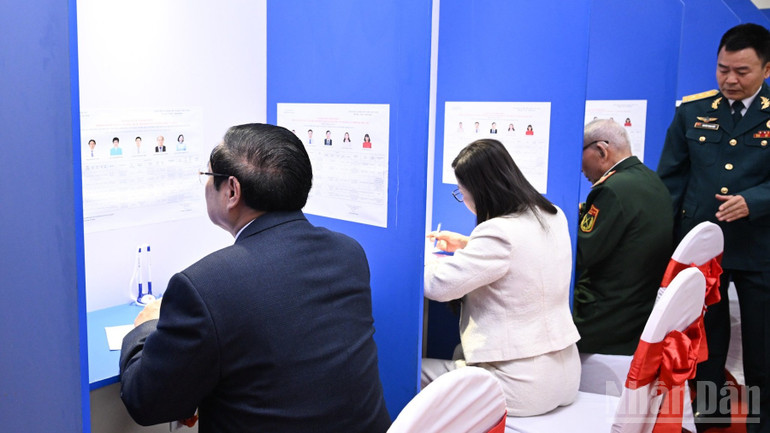 Sau khi tìm hiểu danh sách các ứng cử viên đại biểu Quốc hội khóa XVI và đại biểu Hội đồng nhân dân các cấp nhiệm kỳ 2026–2031, Thủ tướng Chính phủ và Phu nhân đã tiến hành nhận phiếu và thực hiện quyền công dân của mình theo đúng quy định. Việc Thủ tướng Phạm Minh Chính tham gia bỏ phiếu cùng cử tri địa phương thể hiện tinh thần gương mẫu, trách nhiệm của người đứng đầu Chính phủ, đồng thời khẳng định ý nghĩa sâu sắc của cuộc bầu cử – một sinh hoạt chính trị quan trọng của đất nước, nơi ý chí, nguyện vọng và quyền làm chủ của nhân dân được thể hiện thông qua từng lá phiếu.