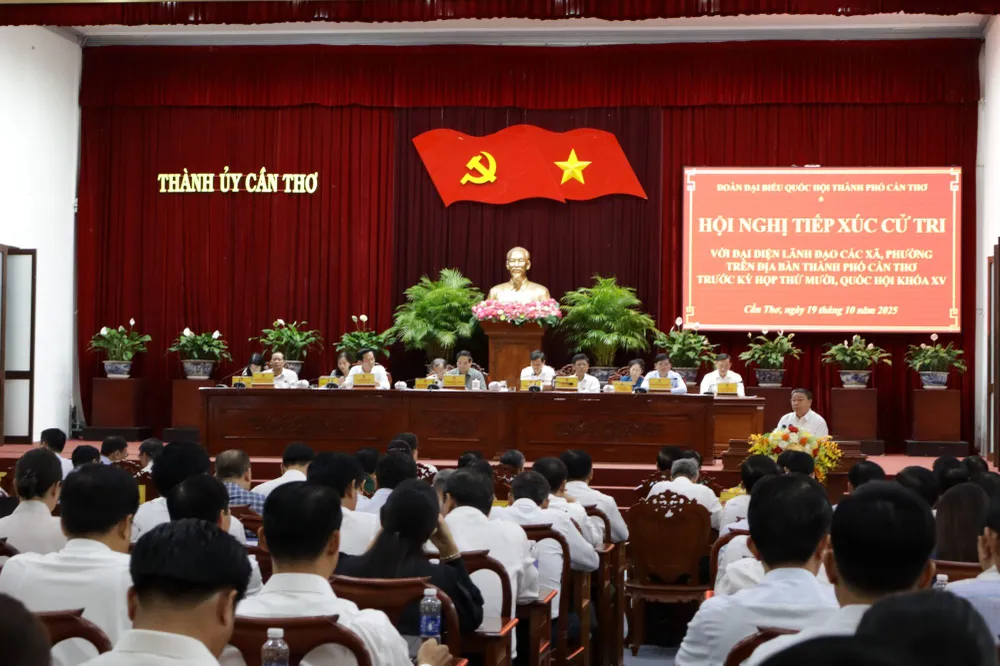 Đoàn ĐBQH tiếp xúc cử tri TP Cần Thơ ngày 19-10. Ảnh: NHẪN NAM