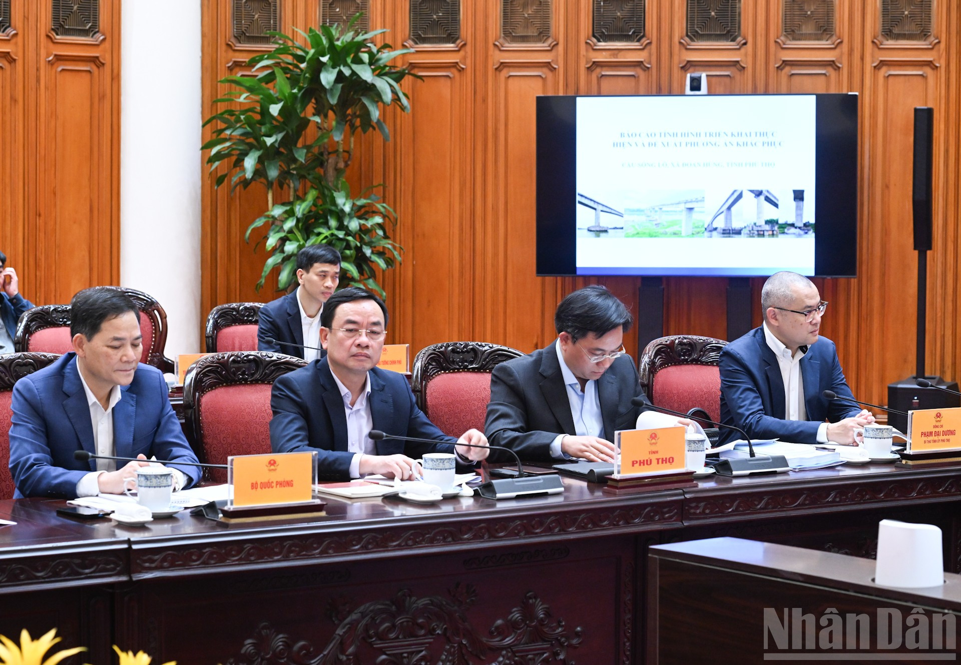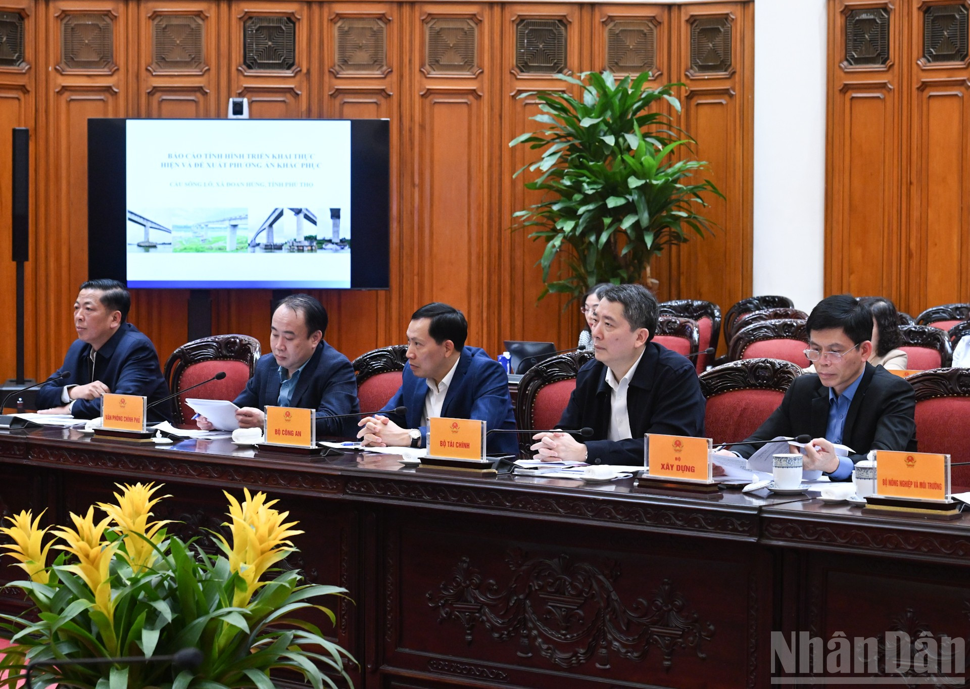 Thủ tướng Phạm Minh Chính chủ trì cuộc họp với các bộ, ngành bàn giải pháp khắc phục sự cố cầu sông Lô ở xã Đoan Hùng, tỉnh Phú Thọ.