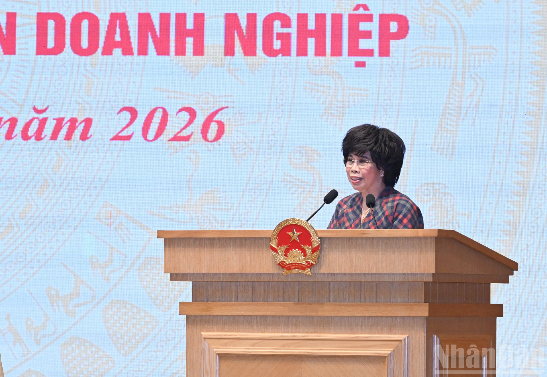 Chủ tịch Hội đồng quản trị Công ty cổ phần Tập đoàn Hồ Gươm Ninh Thị Ty phát biểu tại hội nghị.