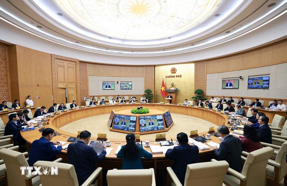 Thủ tướng Phạm Minh Chính chủ trì Phiên họp Chính phủ thường kỳ tháng 10/2025. (Ảnh: Dương Giang/TTXVN)