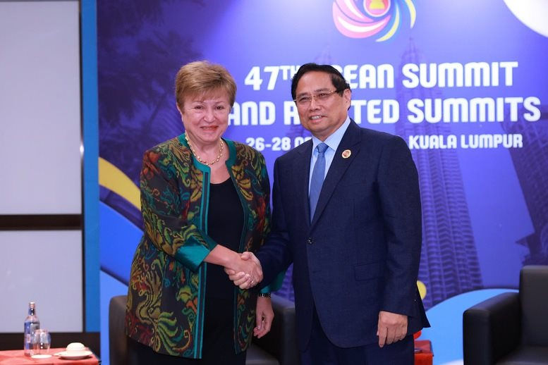 Thủ tướng Chính phủ Phạm Minh Chính và Tổng Giám đốc Quỹ Tiền tệ Quốc tế (IMF) Kristalina Georgieva. Ảnh: CP