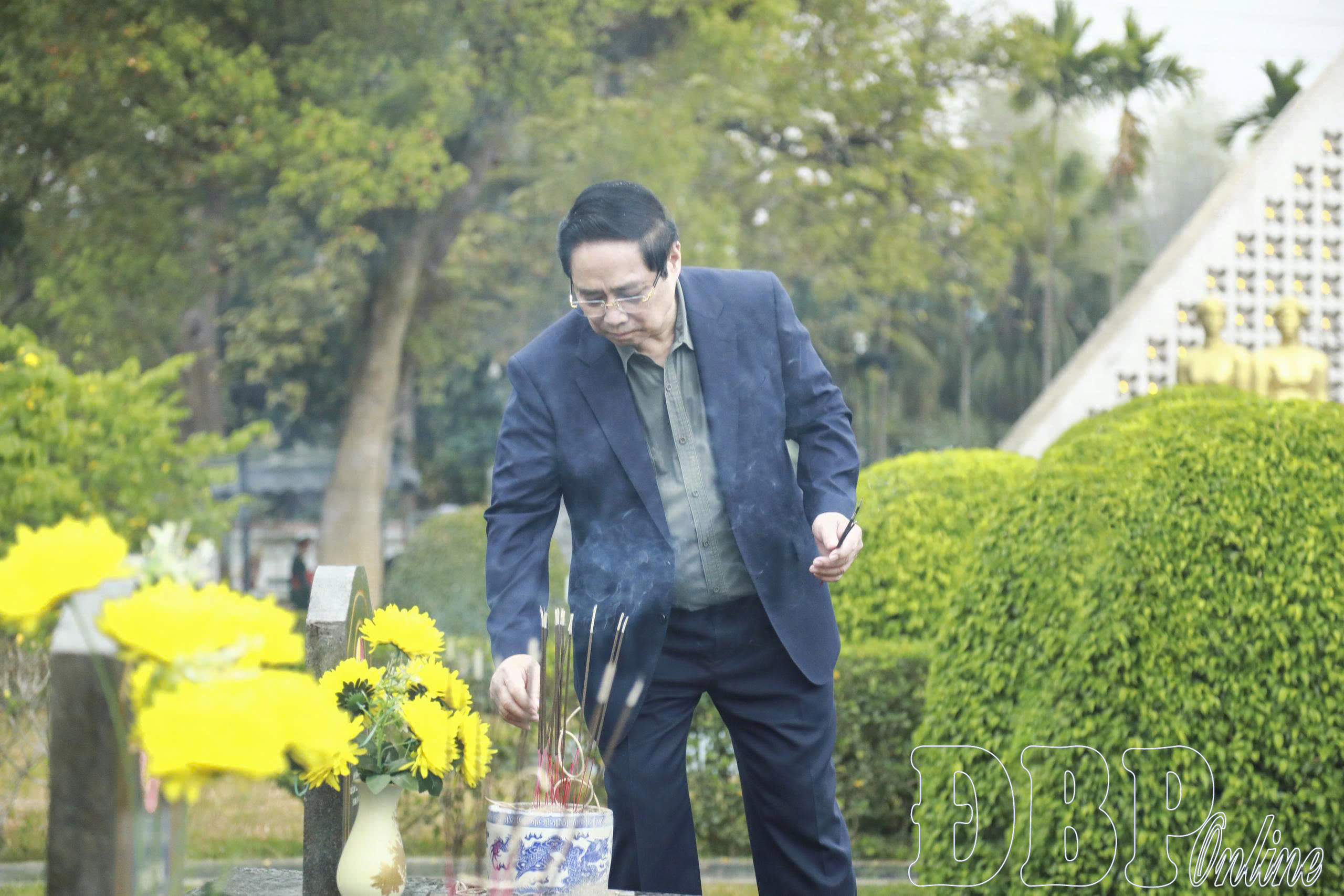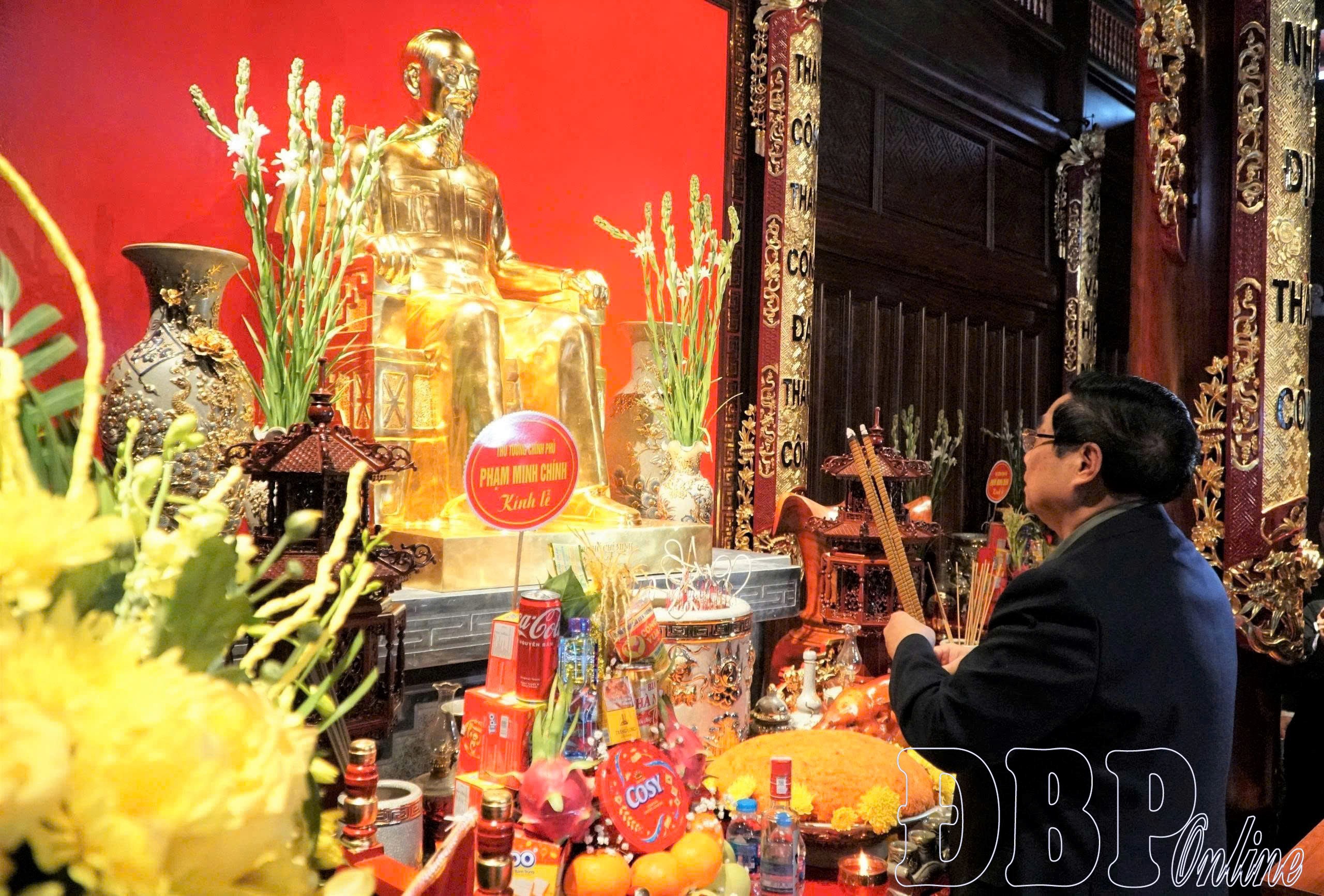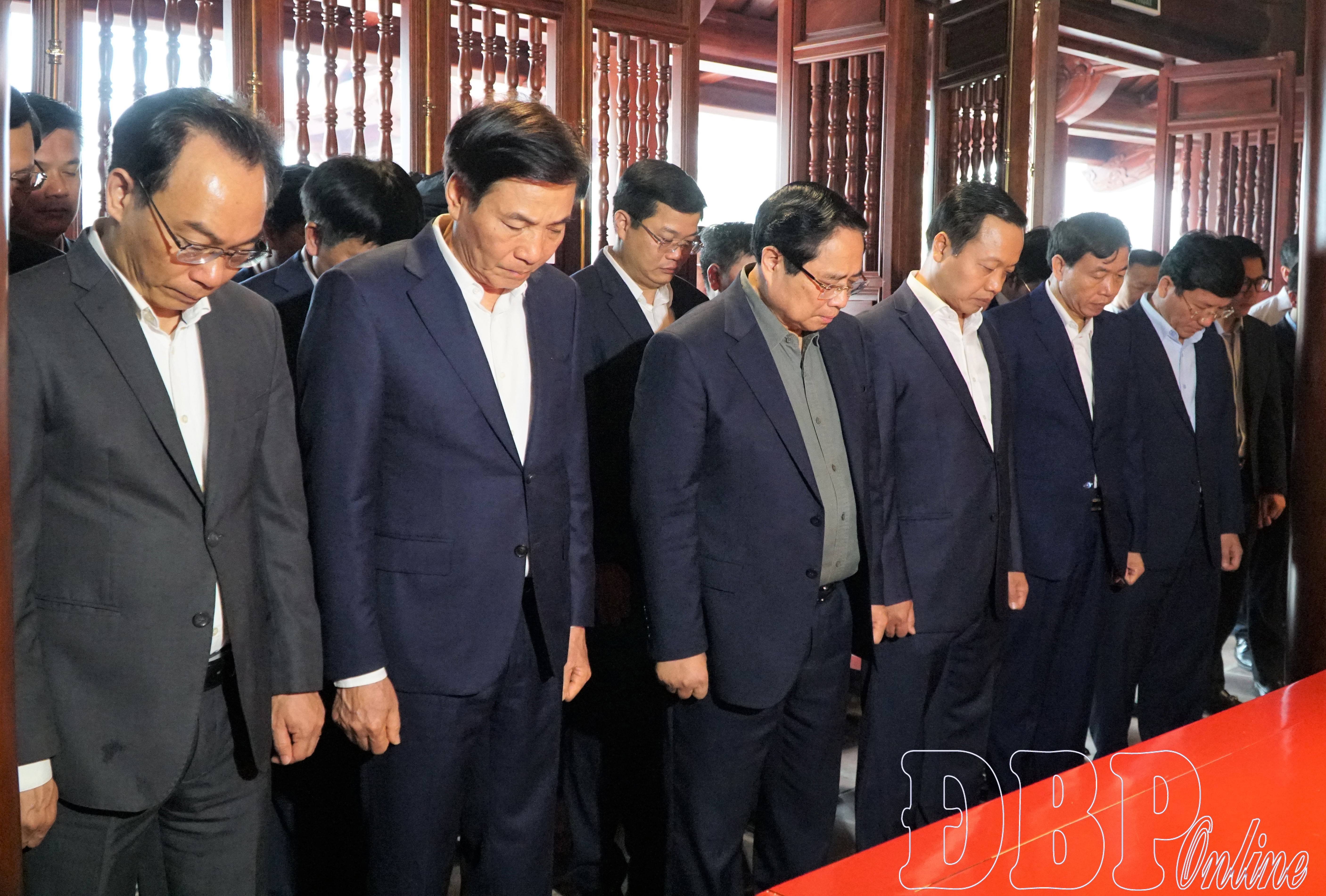 Thủ tướng Chính phủ Phạm Minh Chính dâng hương tưởng niệm các anh hùng liệt sĩ tại Đền thờ Liệt sĩ tại Chiến trường Điện Biên Phủ. Ảnh: Trần Dũng