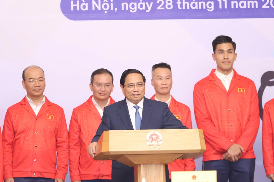 Phát biểu động viên khích lệ, giao nhiệm vụ và trao cờ cho Đoàn Thể thao Việt Nam tham dự SEA Games 33, Thủ tướng Phạm Minh Chính nhấn mạnh vai trò của thể thao và sự quan tâm của Đảng, Nhà nước đối với thể thao, cũng như những thành tựu mà thể thao Việt Nam đã đạt được trong suốt chiều dài lịch sử, đặc biệt tại đấu trường SEA Games.