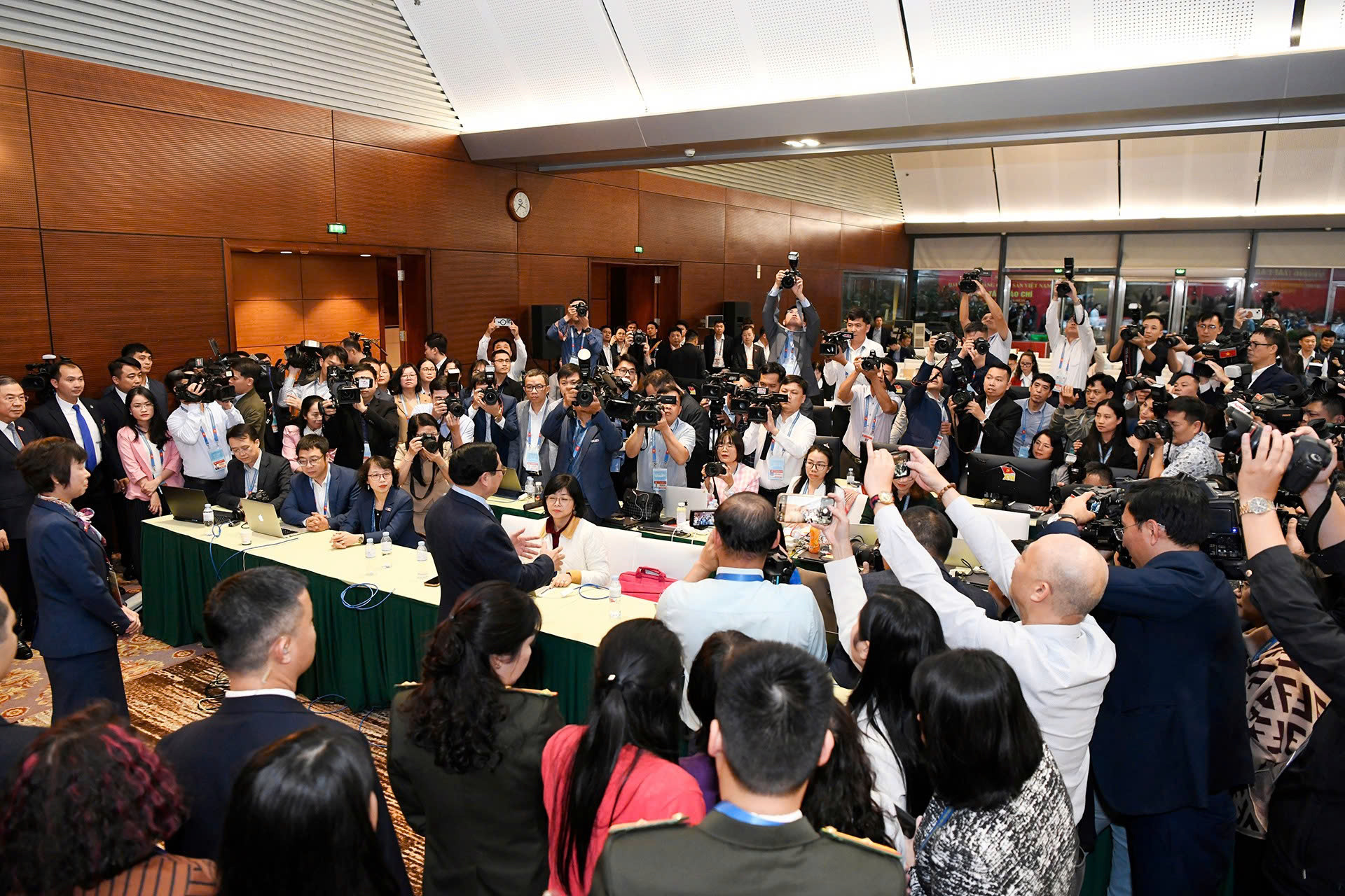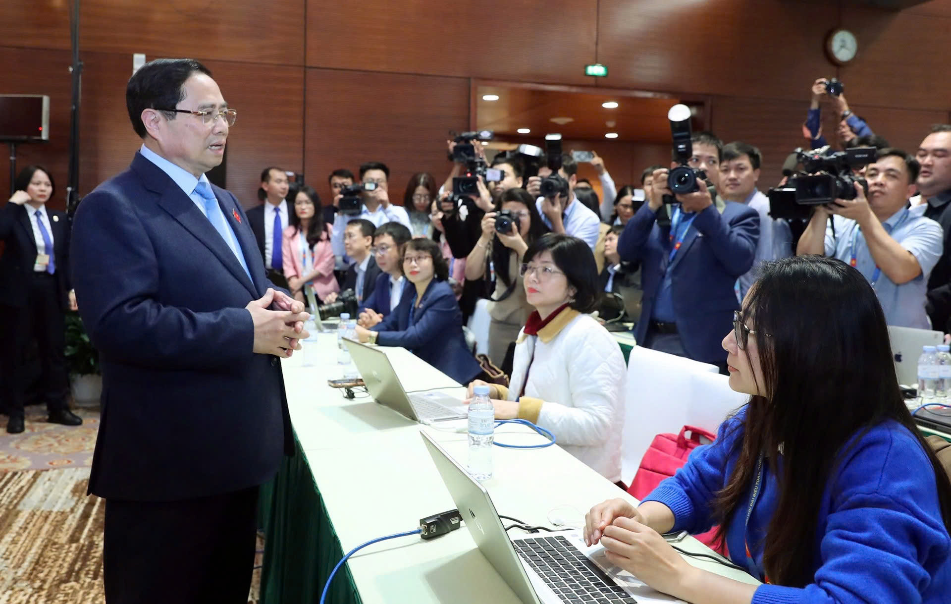 Thủ tướng Phạm Minh Chính thăm hỏi phóng viên tại Trung tâm báo chí