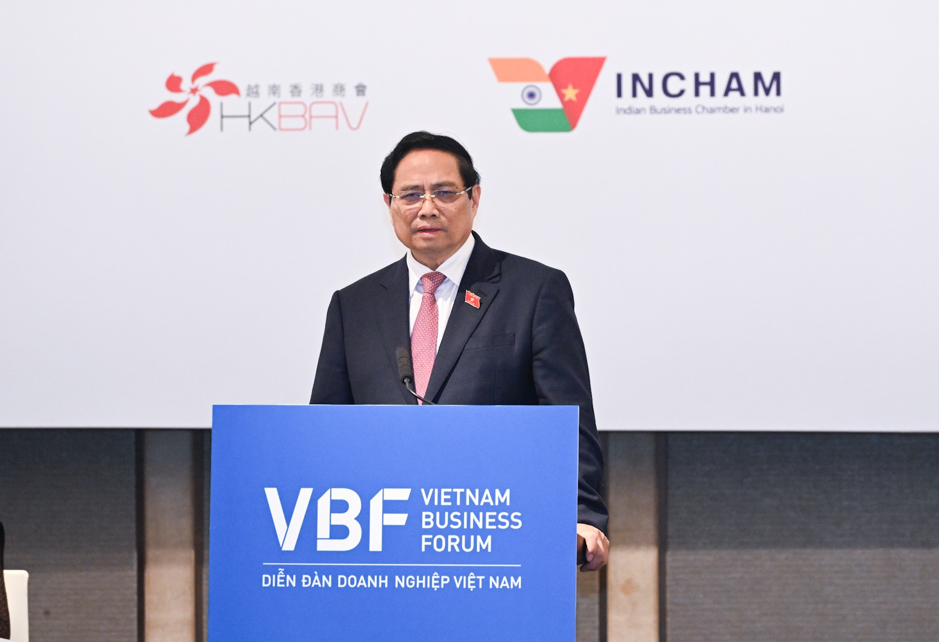 Thủ tướng Phạm Minh Chính và các đại biểu dự Diễn đàn Doanh nghiệp Việt Nam thường niên.