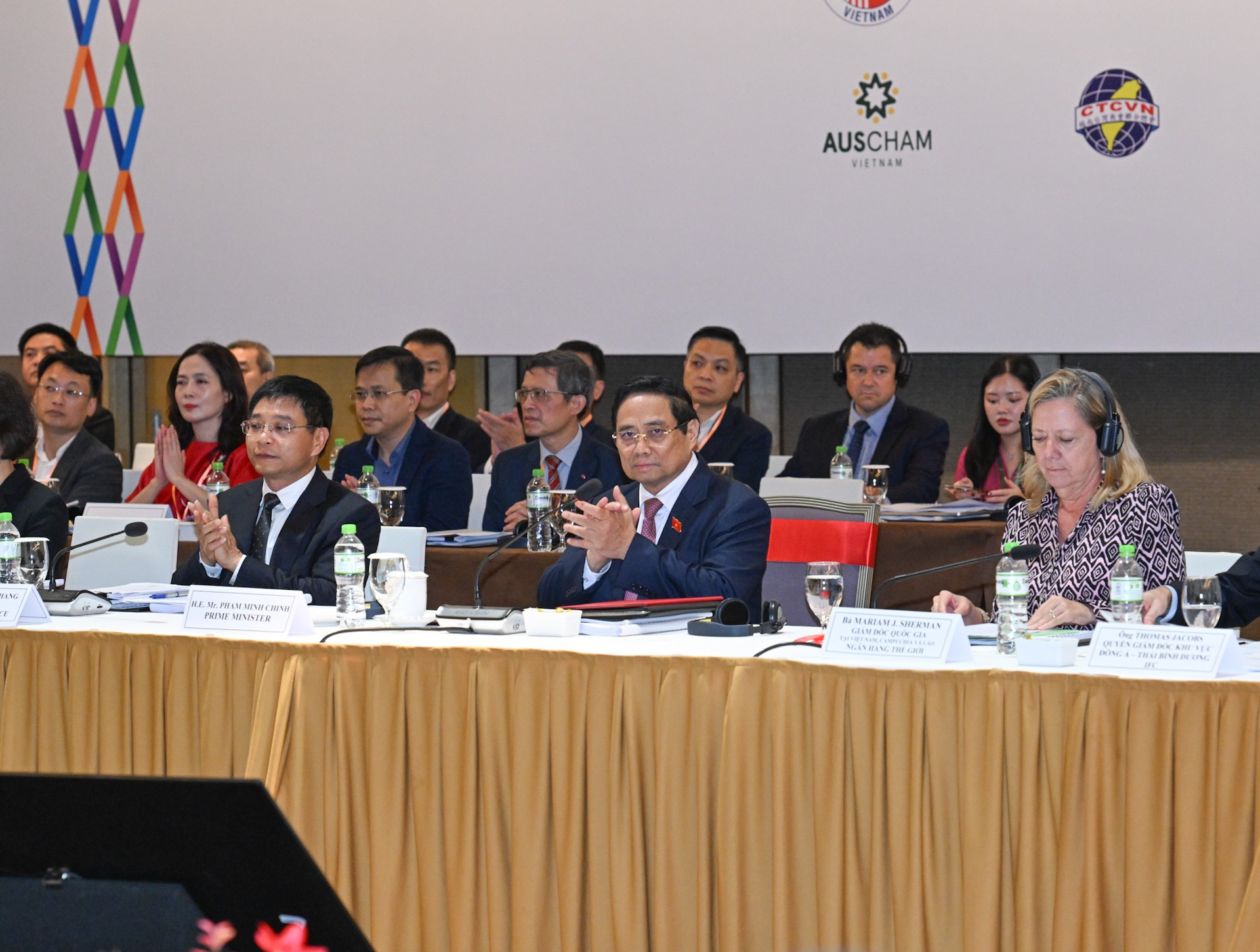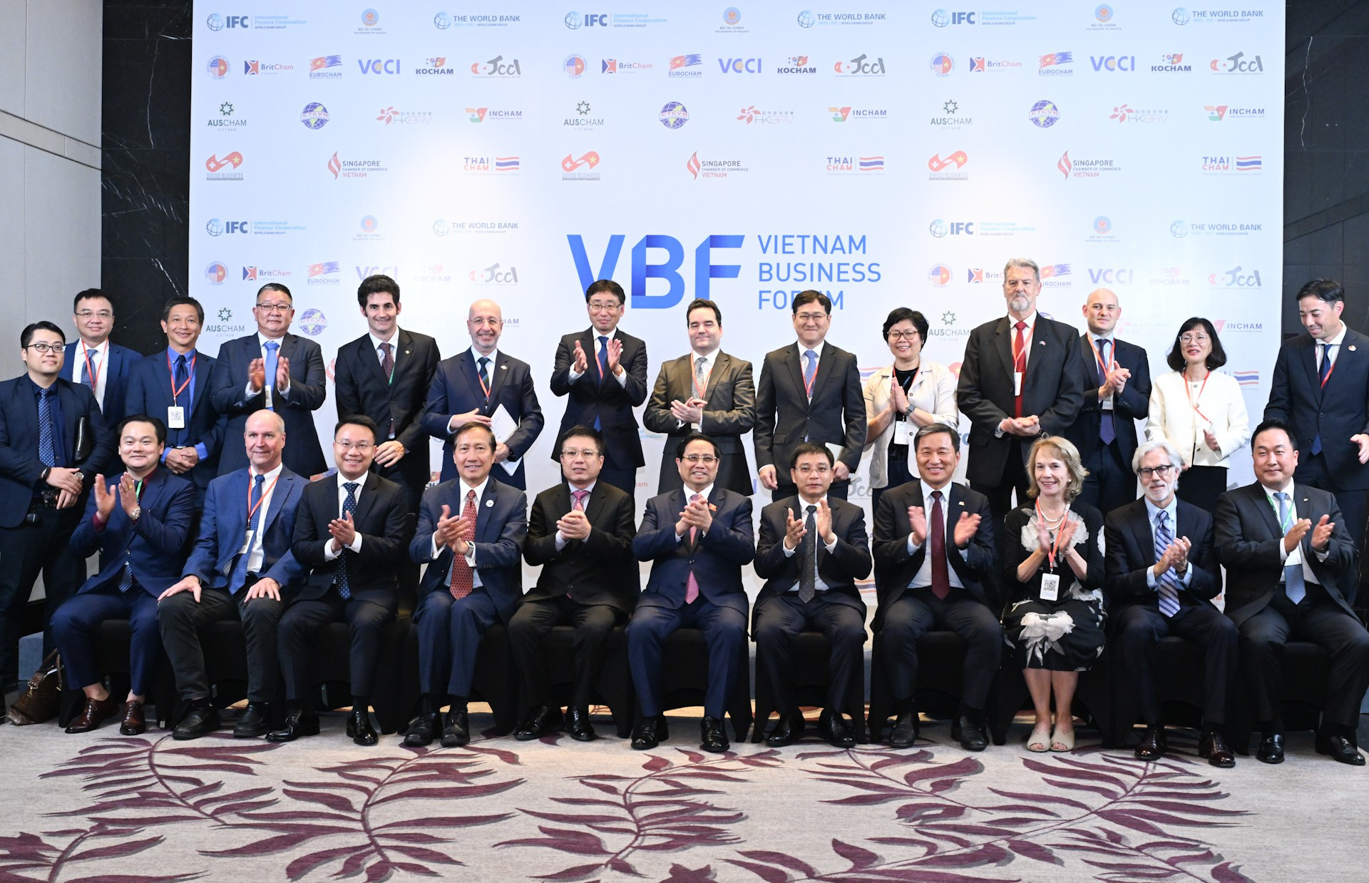 Thủ tướng Phạm Minh Chính với các đại biểu tham dự Diễn đàn Doanh nghiệp Việt Nam thường niên.