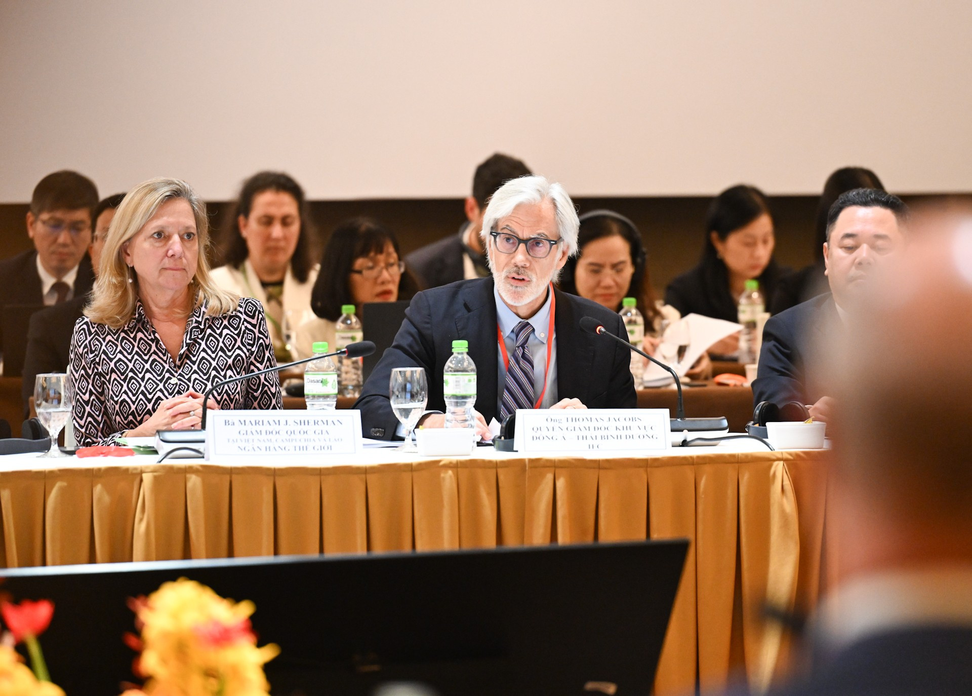Ông Thomas Jacobs, Quyền Giám đốc Tổ chức Tài chính quốc tế (IFC) khu vực Đông Á-Thái Bình Dương phát biểu tại diễn đàn.