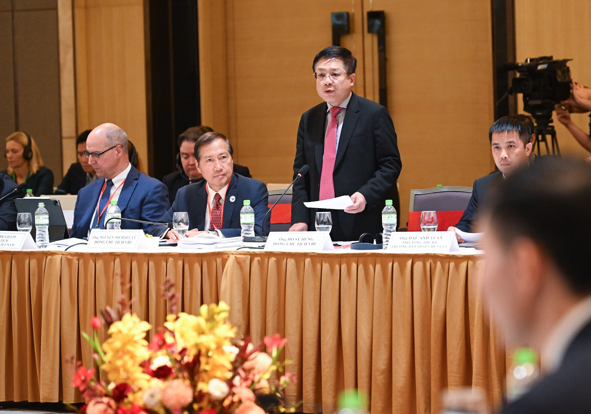 Ông Hồ Sỹ Hùng, đồng Chủ tịch Liên minh Diễn đàn Doanh nghiệp Việt Nam phát biểu tại diễn đàn.
