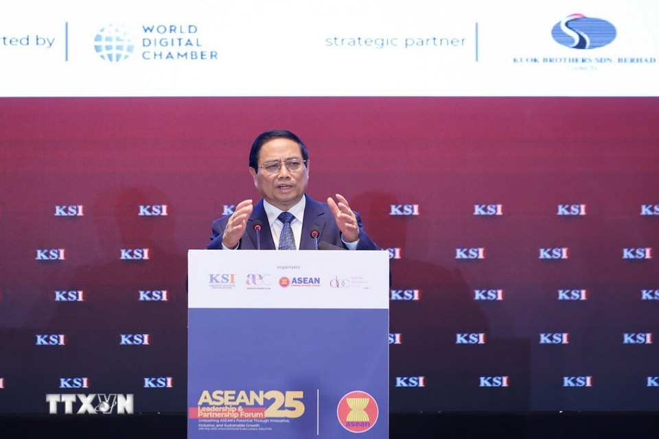 Thủ tướng Phạm Minh Chính phát biểu tại Diễn đàn Lãnh đạo và Đối tác ASEAN. (Ảnh: Dương Giang/TTXVN)